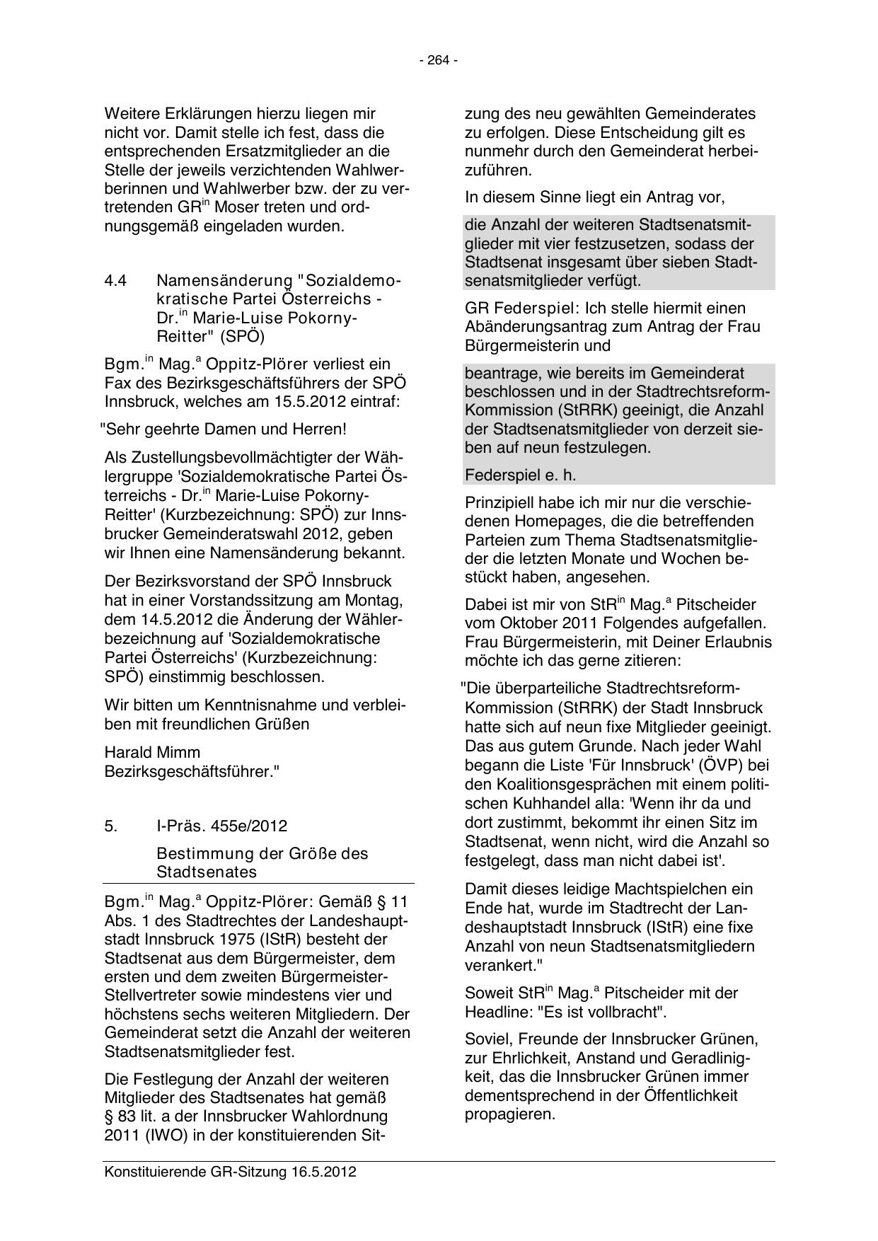 2011 (IWO) in der konstituierenden SitKonstituierende GR-Sitzung 16.5.2012