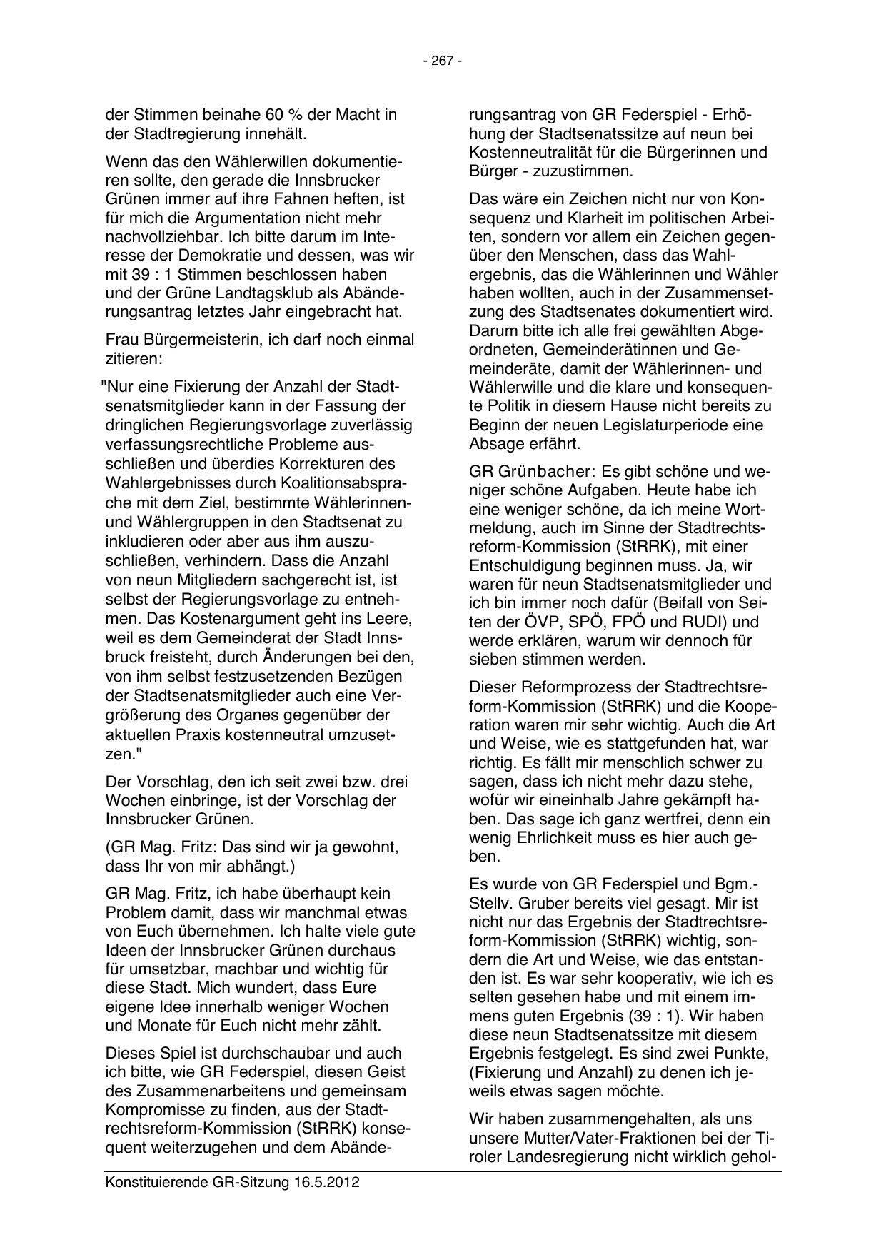 Kompromisse zu finden, aus der Stadtrechtsreform-Kommission (StRRK) konsequent weiterzugehen und dem AbändeKonstituierende GR-Sitzung 16.5.2012