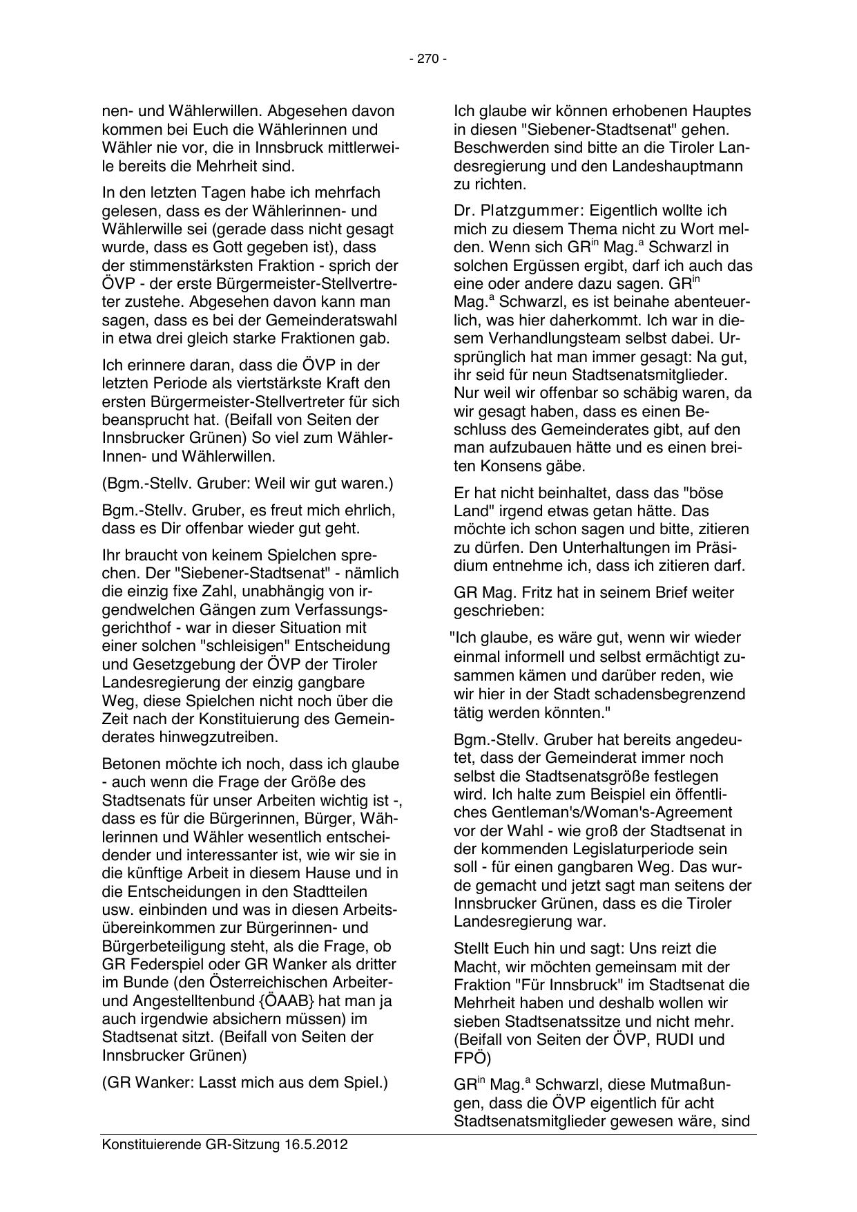 Konstituierende GR-Sitzung 16.5.2012
