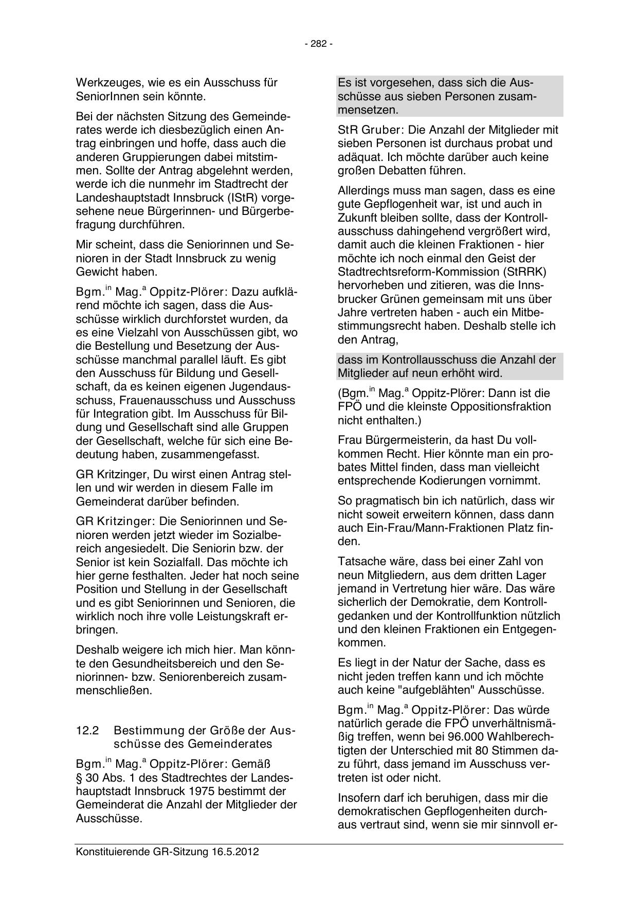 Konstituierende GR-Sitzung 16.5.2012