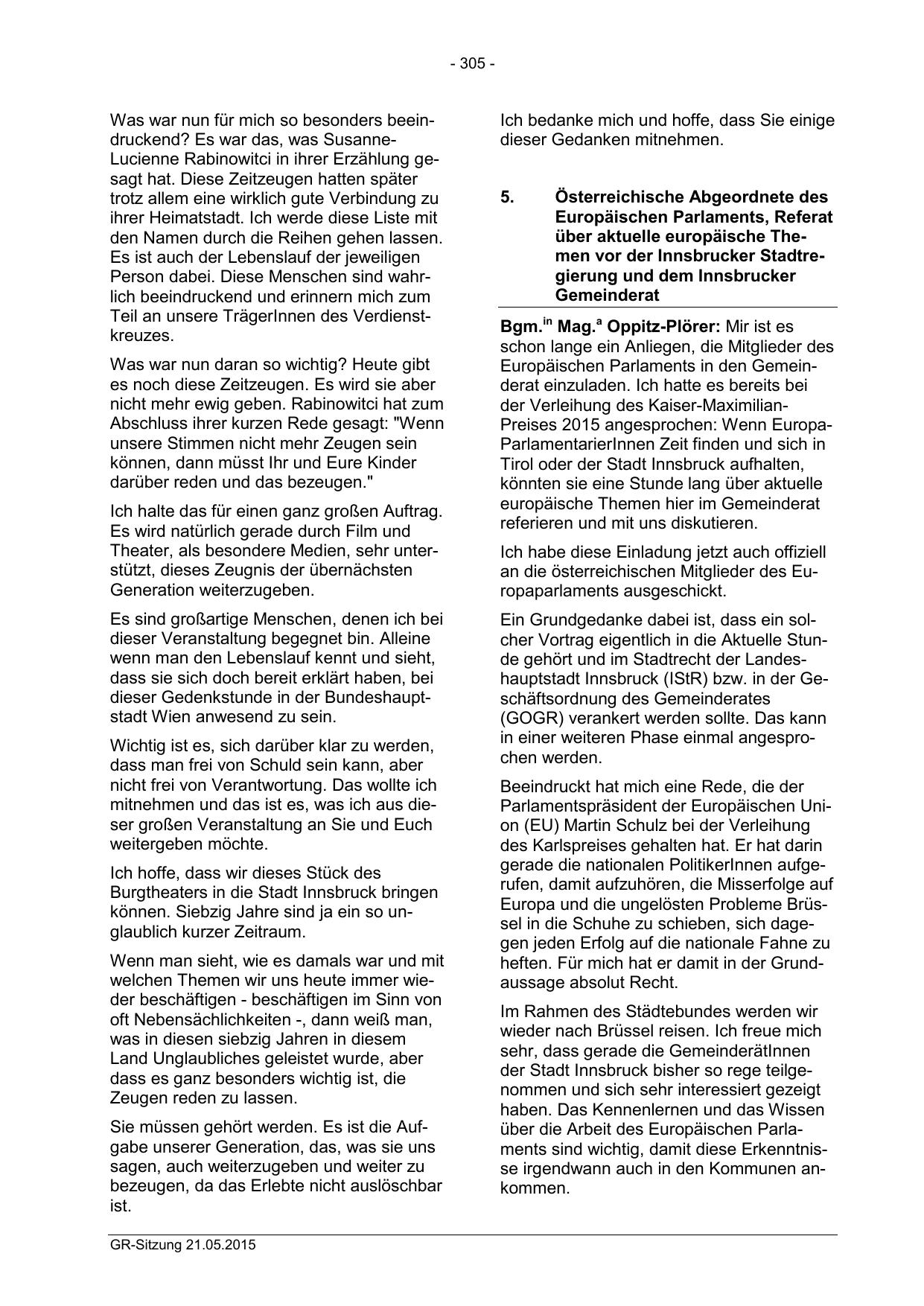 Ein Grundgedanke dabei ist, dass ein solcher Vortrag eigentlich in die Aktuelle Stunde gehört und im Stadtrecht der Landeshauptstadt Innsbruck (IStR) bzw. in der Geschäftsordnung des Gemeinderates