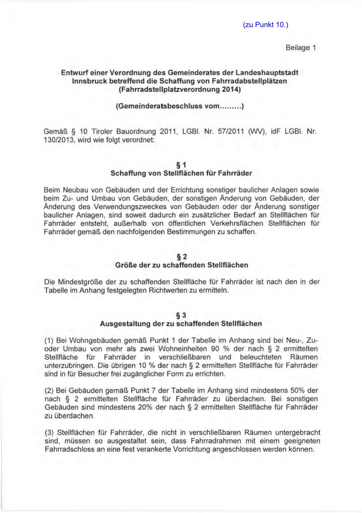 Gemäß § 10 Tiroler Bauordnung 2011 . LGBI. Nr. 57/2011 (VW) , idF LGBI. Nr.