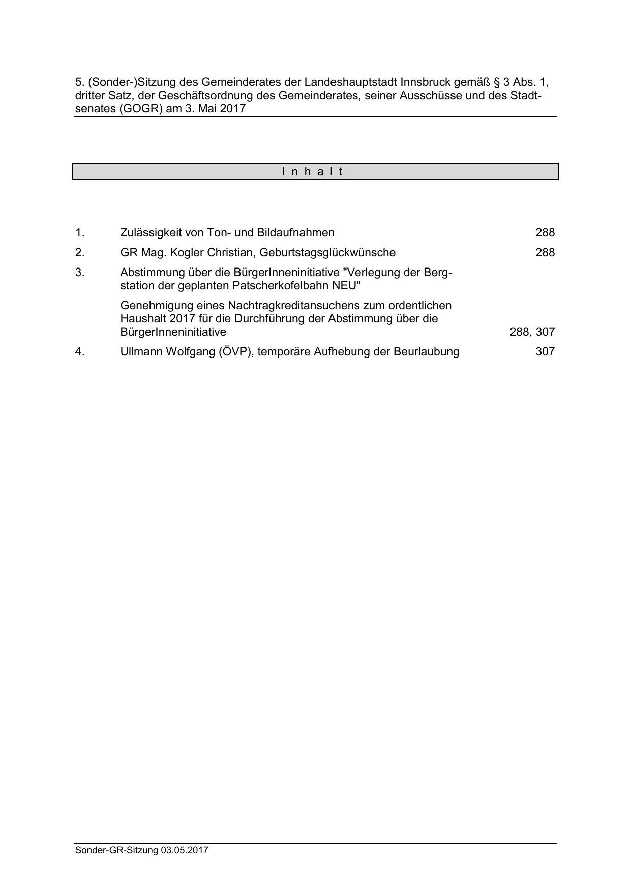 5. (Sonder-)Sitzung des Gemeinderates der Landeshauptstadt Innsbruck gemäß § 3 Abs. 1,