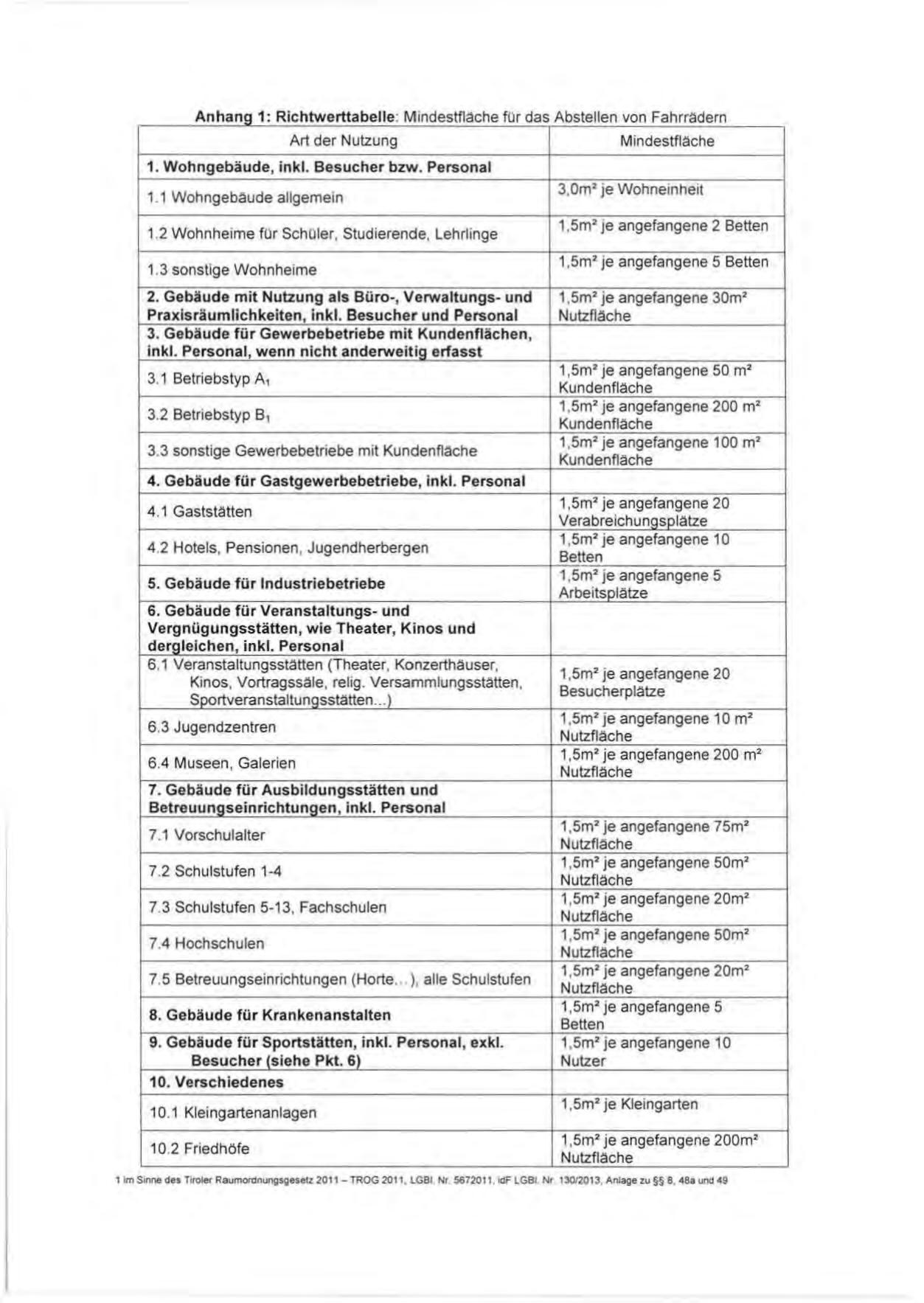 Anhan~ 1: Richtwerttabell e: Mindestflache fOr das Abstellen von Fahrrädern