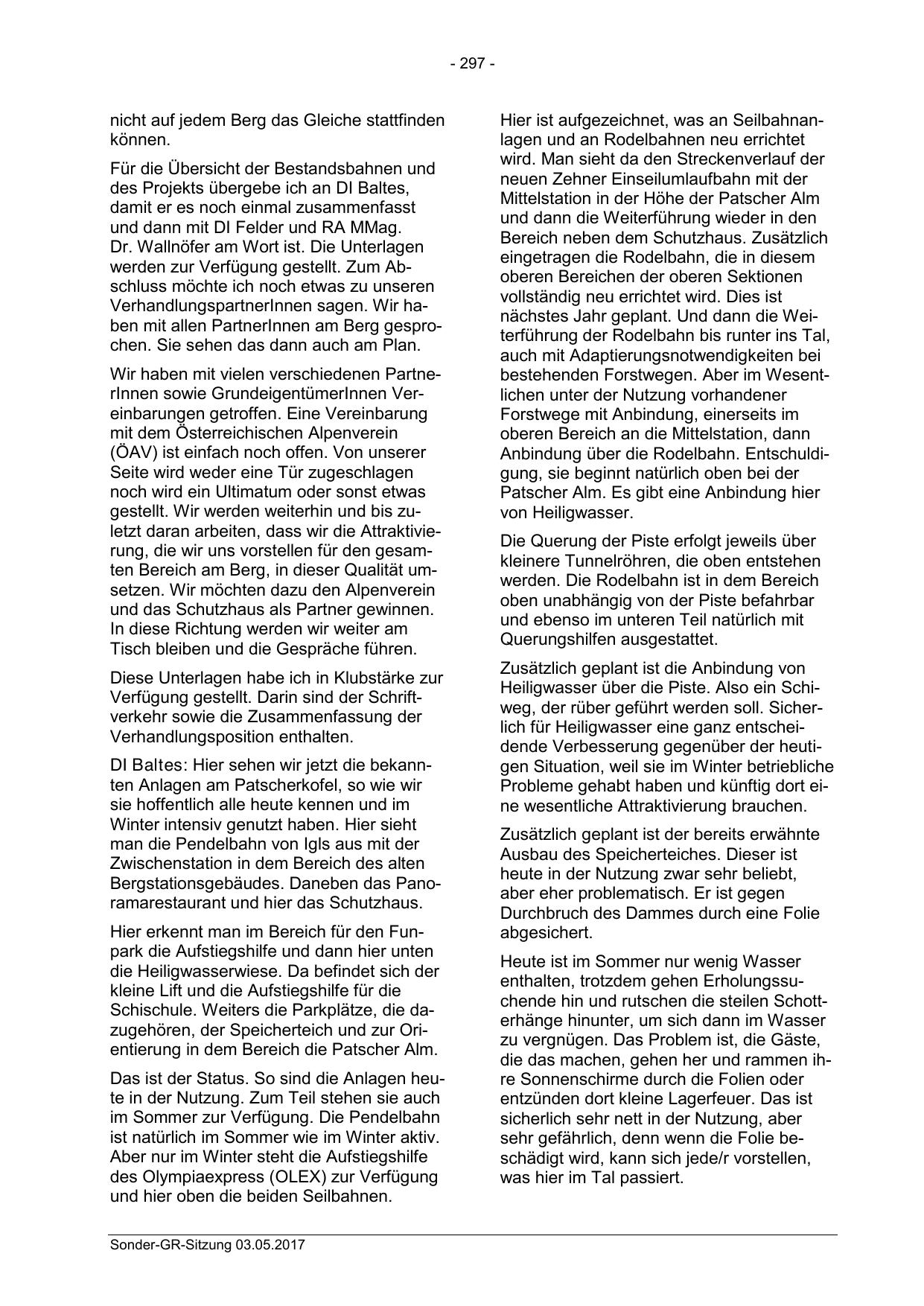 DI Baltes: Hier sehen wir jetzt die bekannten Anlagen am Patscherkofel, so wie wir