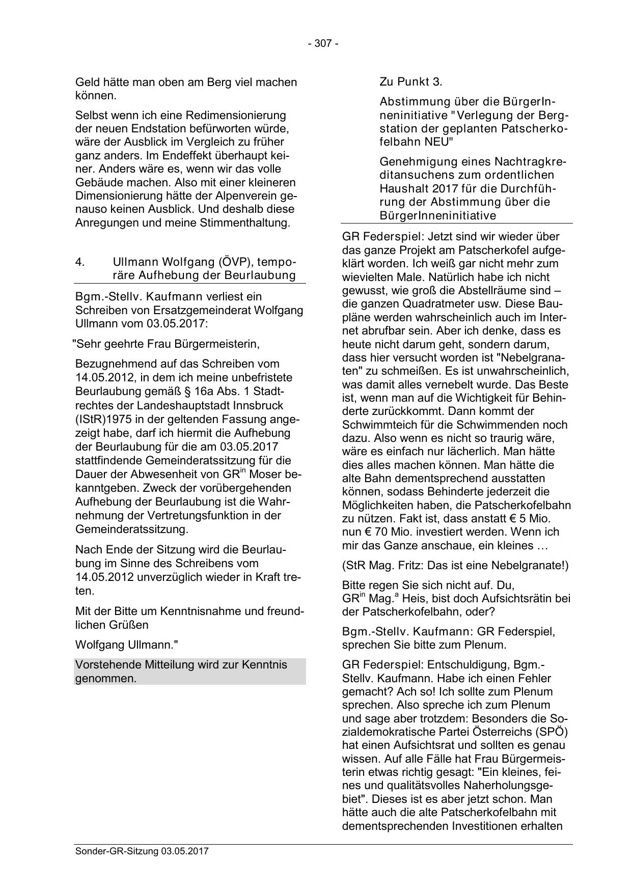 Bgm.-Stellv. Kaufmann: GR Federspiel,