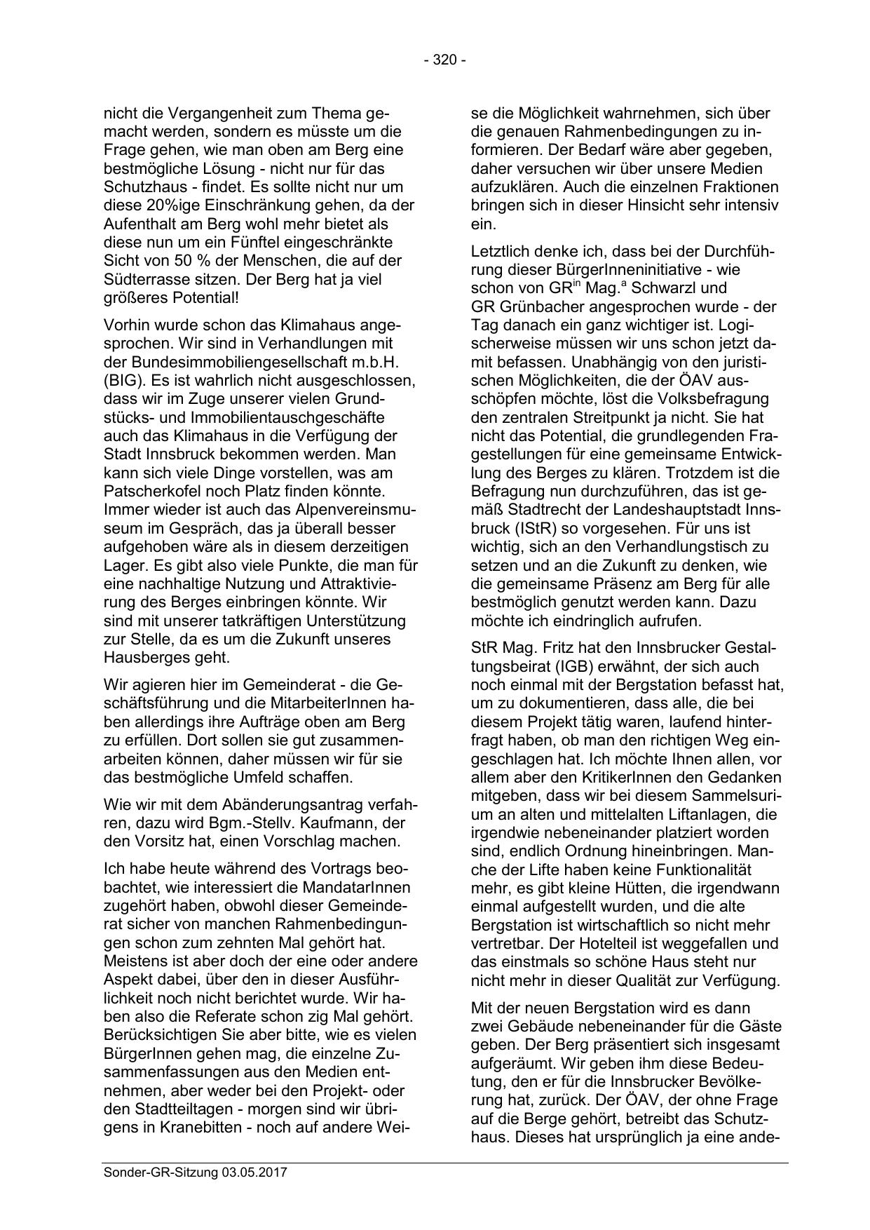 den Stadtteiltagen - morgen sind wir übrigens in Kranebitten - noch auf andere WeiSonder-GR-Sitzung 03.05.2017