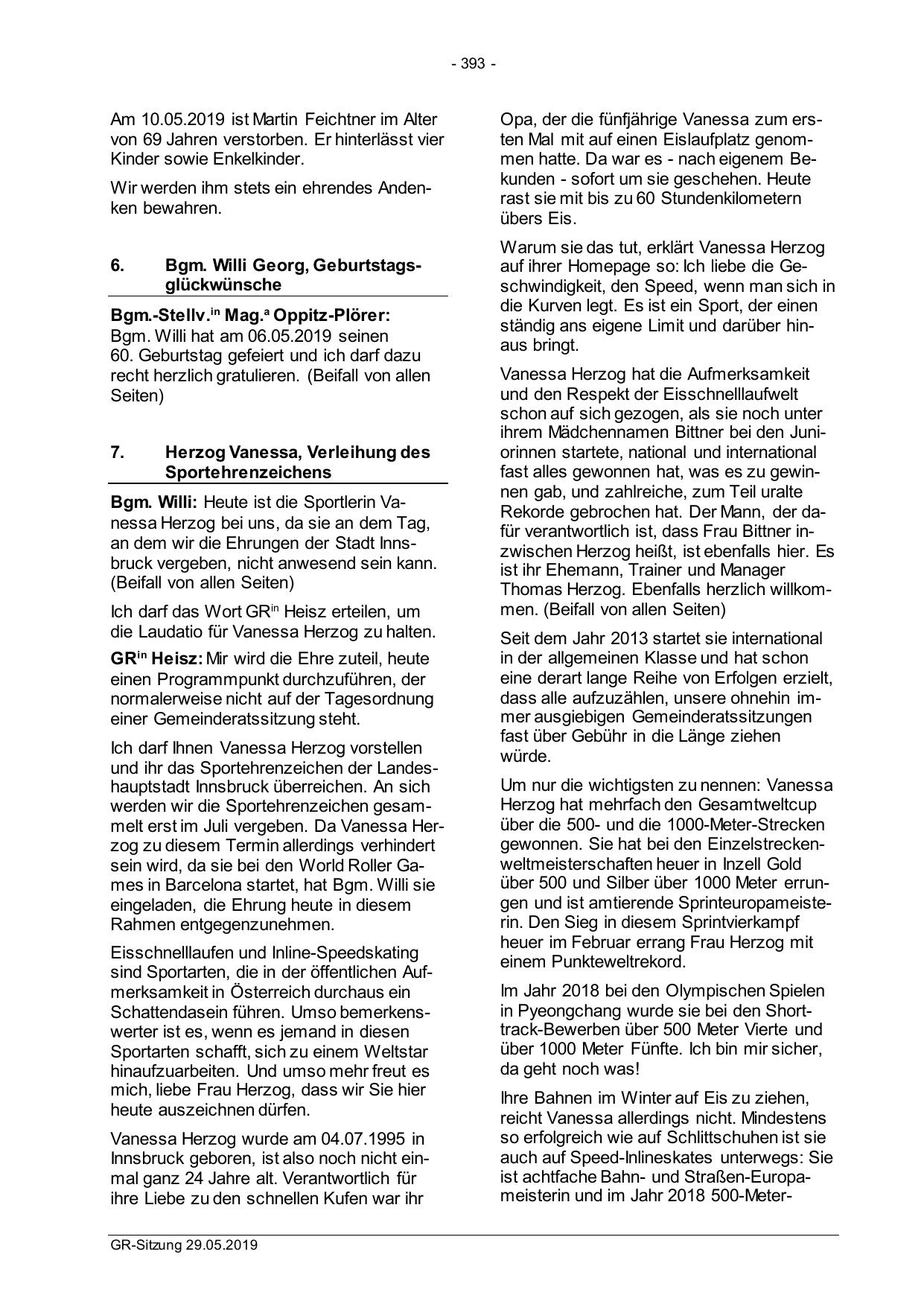 und ihr das Sportehrenzeichen der Landeshauptstadt Innsbruck überreichen. An sich