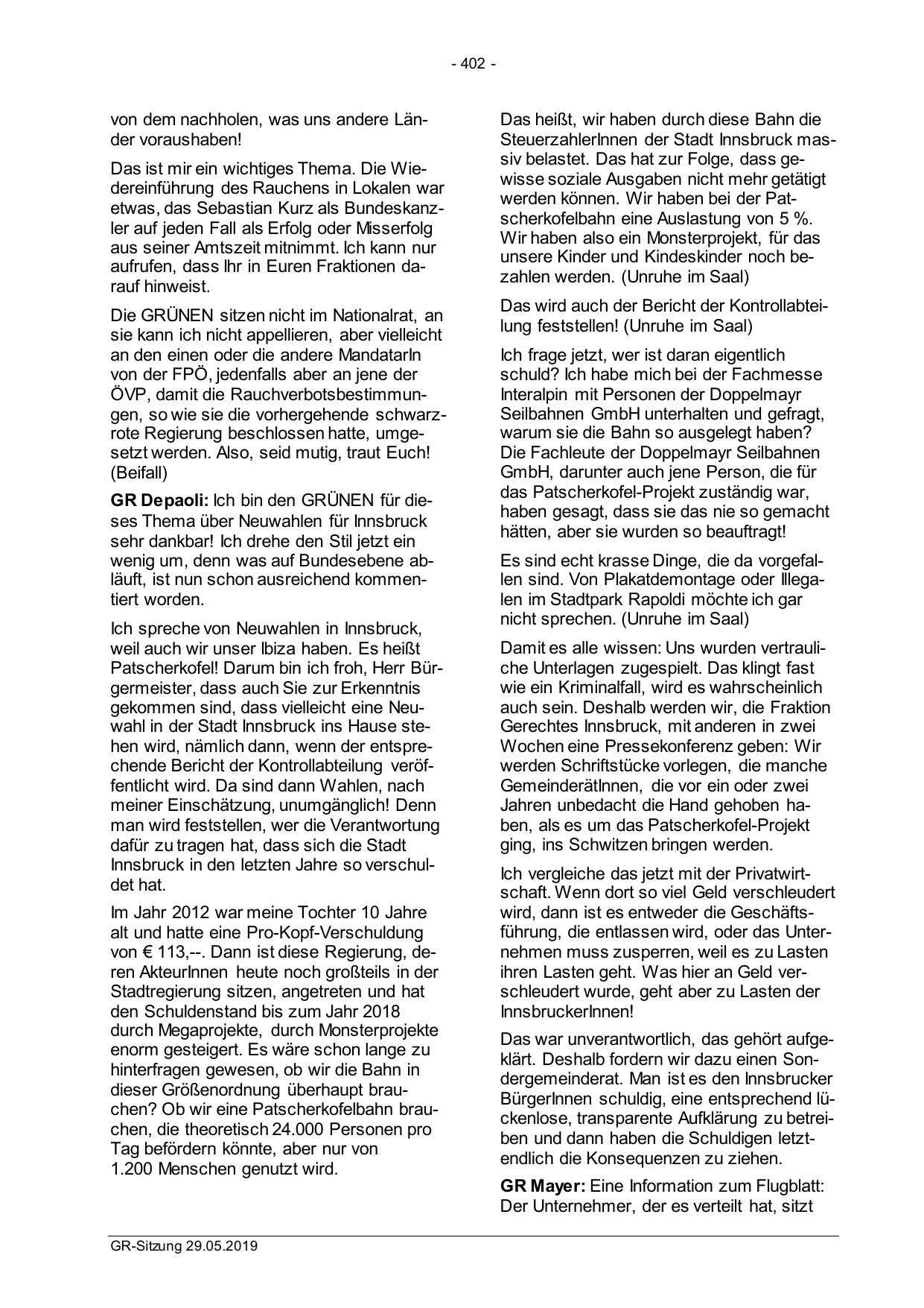 gekommen sind, dass vielleicht eine Neuwahl in der Stadt Innsbruck ins Hause stehen wird, nämlich dann, wenn der entsprechende Bericht der Kontrollabteilung veröffentlicht wird. Da sind dann Wahlen, nach