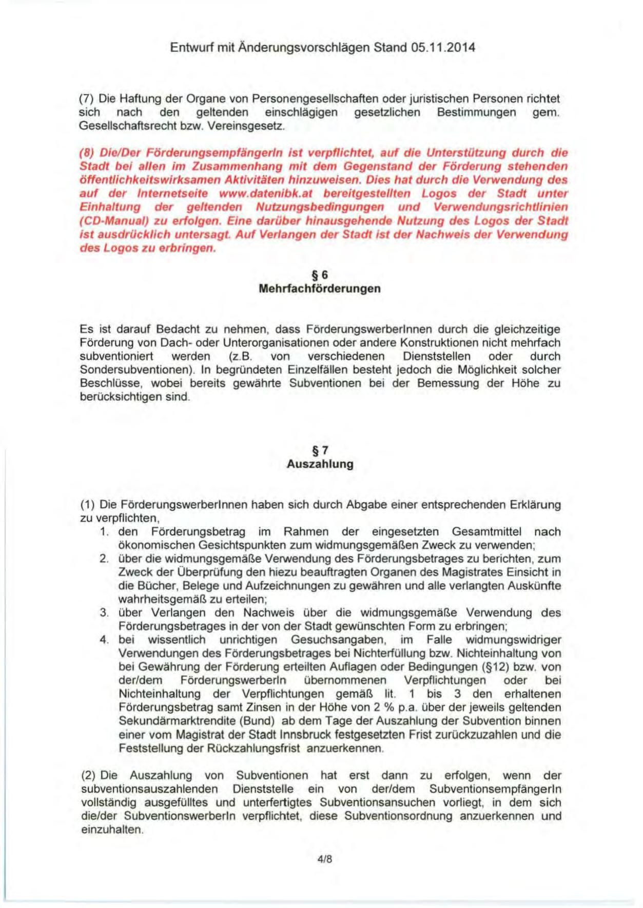die/der Subventionswerberln verpflichtet , diese Subventionsordnung anzuerkennen und