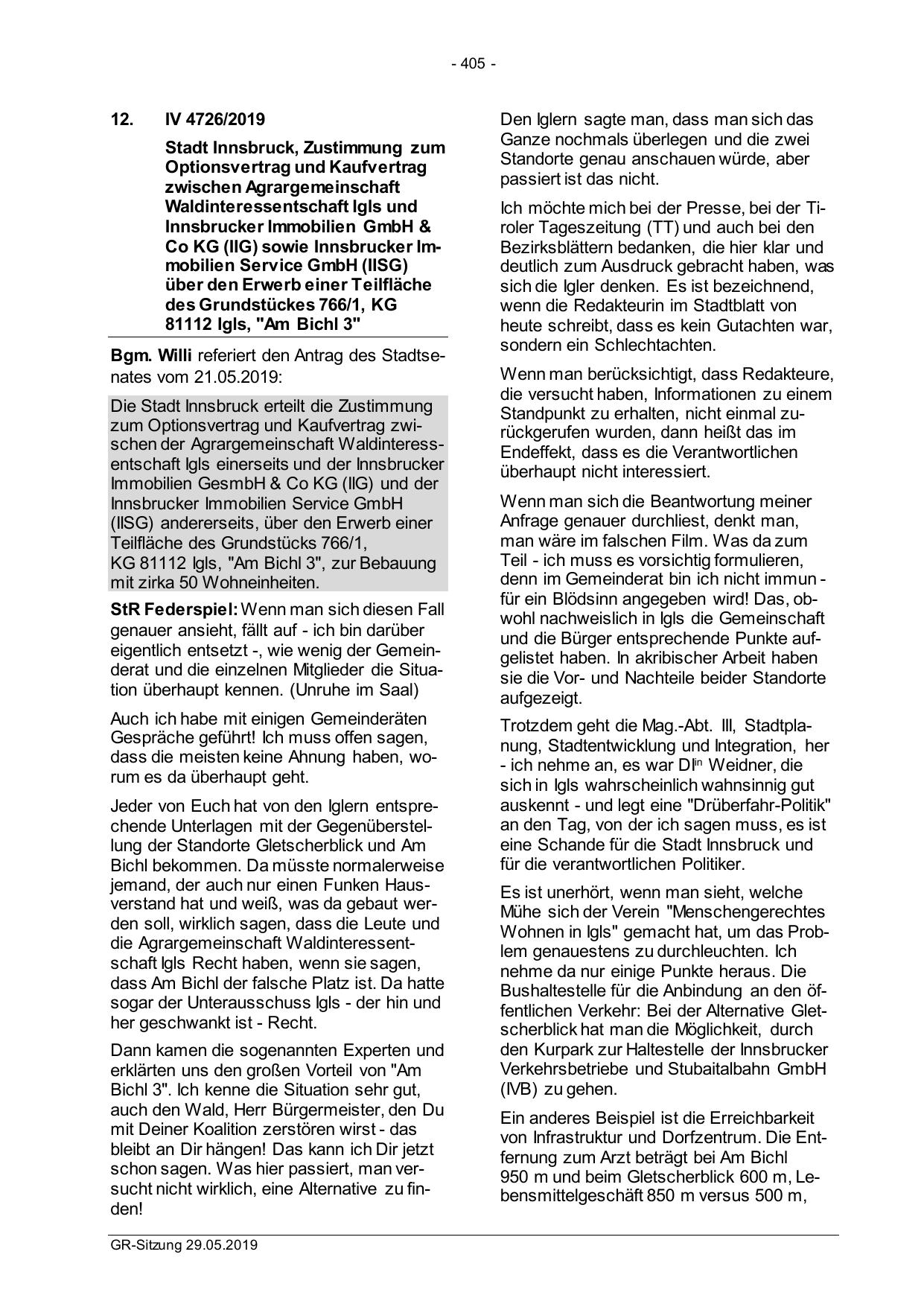 denn im Gemeinderat bin ich nicht immun für ein Blödsinn angegeben wird! Das, obwohl nachweislich in Igls die Gemeinschaft