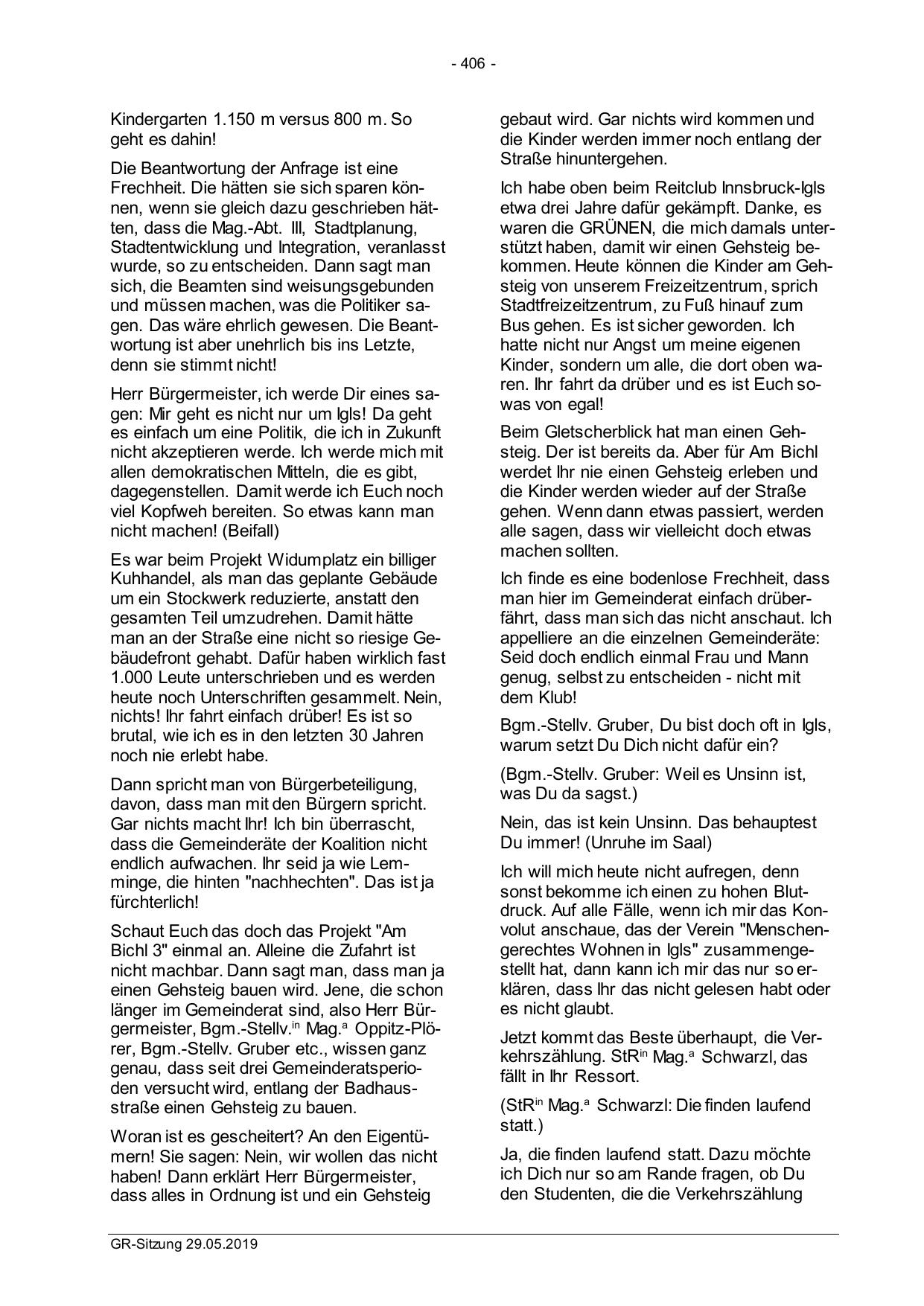 Bgm.-Stellv. Gruber, Du bist doch oft in Igls,