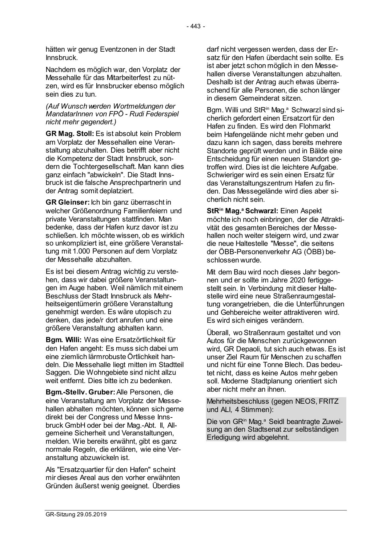 Beschluss der Stadt Innsbruck als Mehrheitseigentümerin größere Veranstaltung