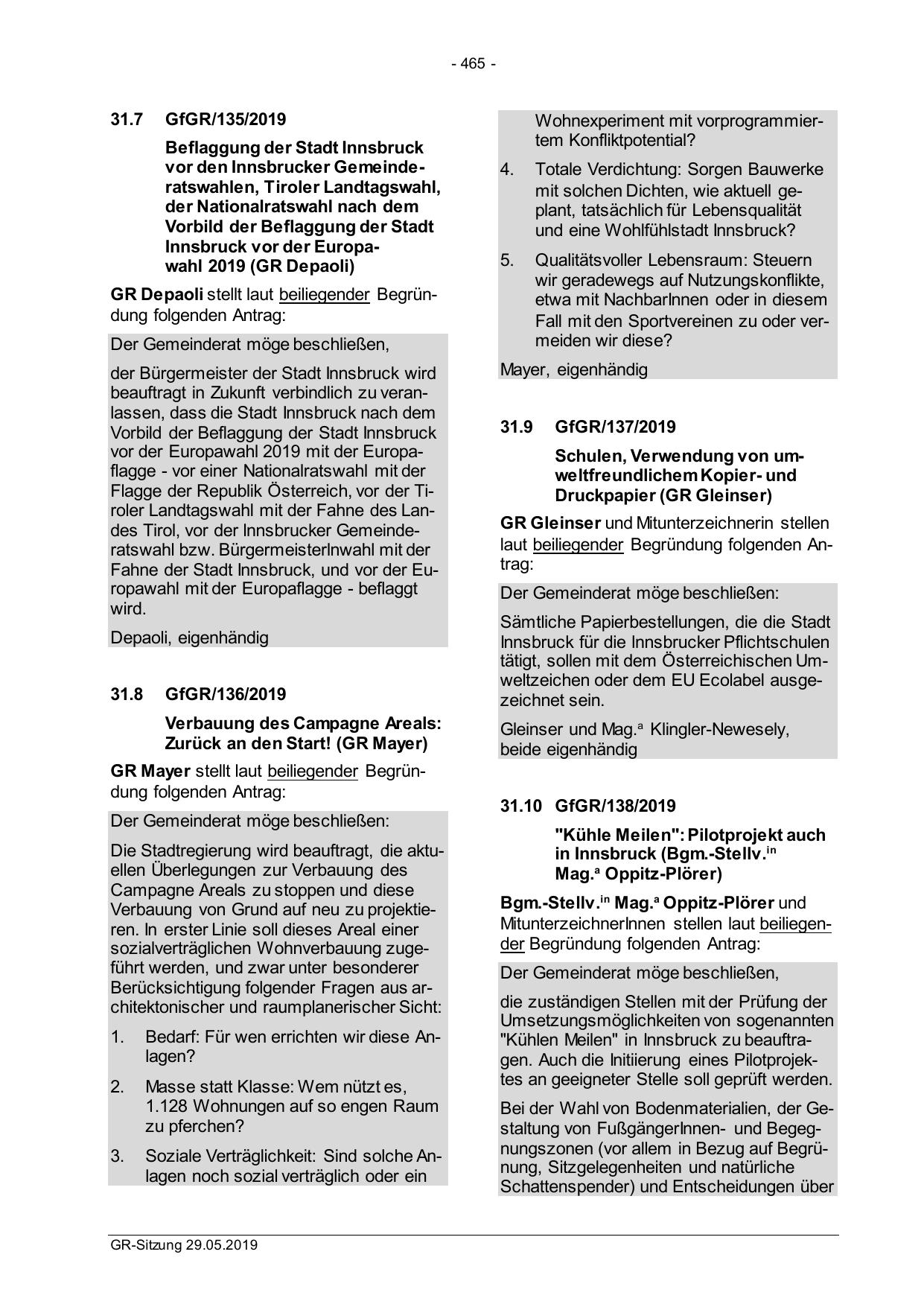 beauftragt in Zukunft verbindlich zu veranlassen, dass die Stadt Innsbruck nach dem