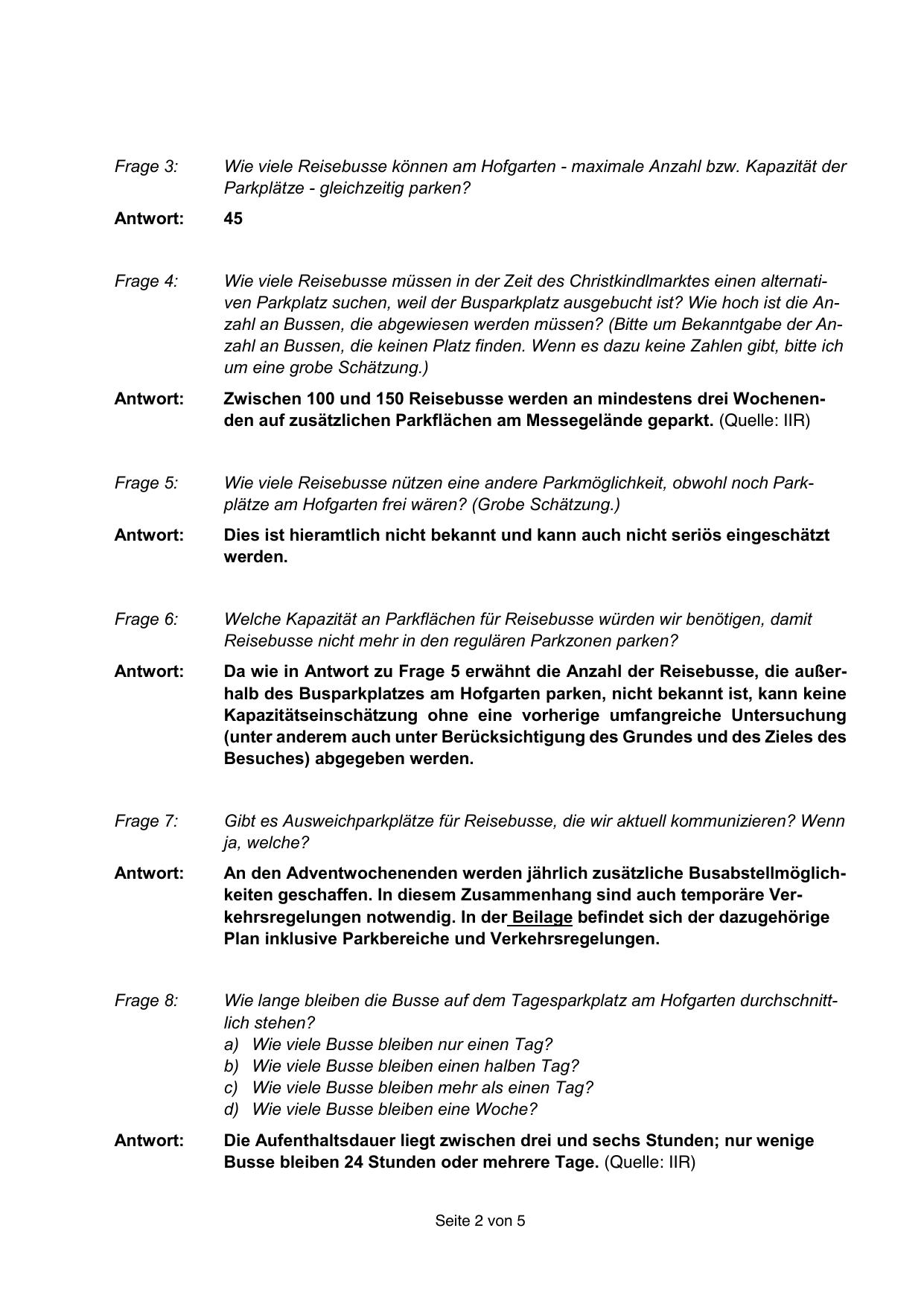 Wie viele Reisebusse müssen in der Zeit des Christkindlmarktes einen alternativen Parkplatz suchen, weil der Busparkplatz ausgebucht ist? Wie hoch ist die Anzahl an Bussen, die abgewiesen werden müssen? (Bitte um Bekanntgabe der Anzahl an Bussen, die keinen Platz finden. Wenn es dazu keine Zahlen gibt, bitte ich