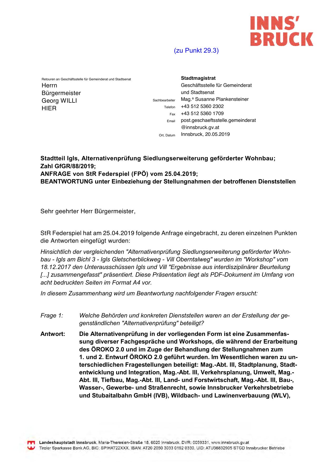 StR Federspiel hat am 25.04.2019 folgende Anfrage eingebracht, zu deren einzelnen Punkten