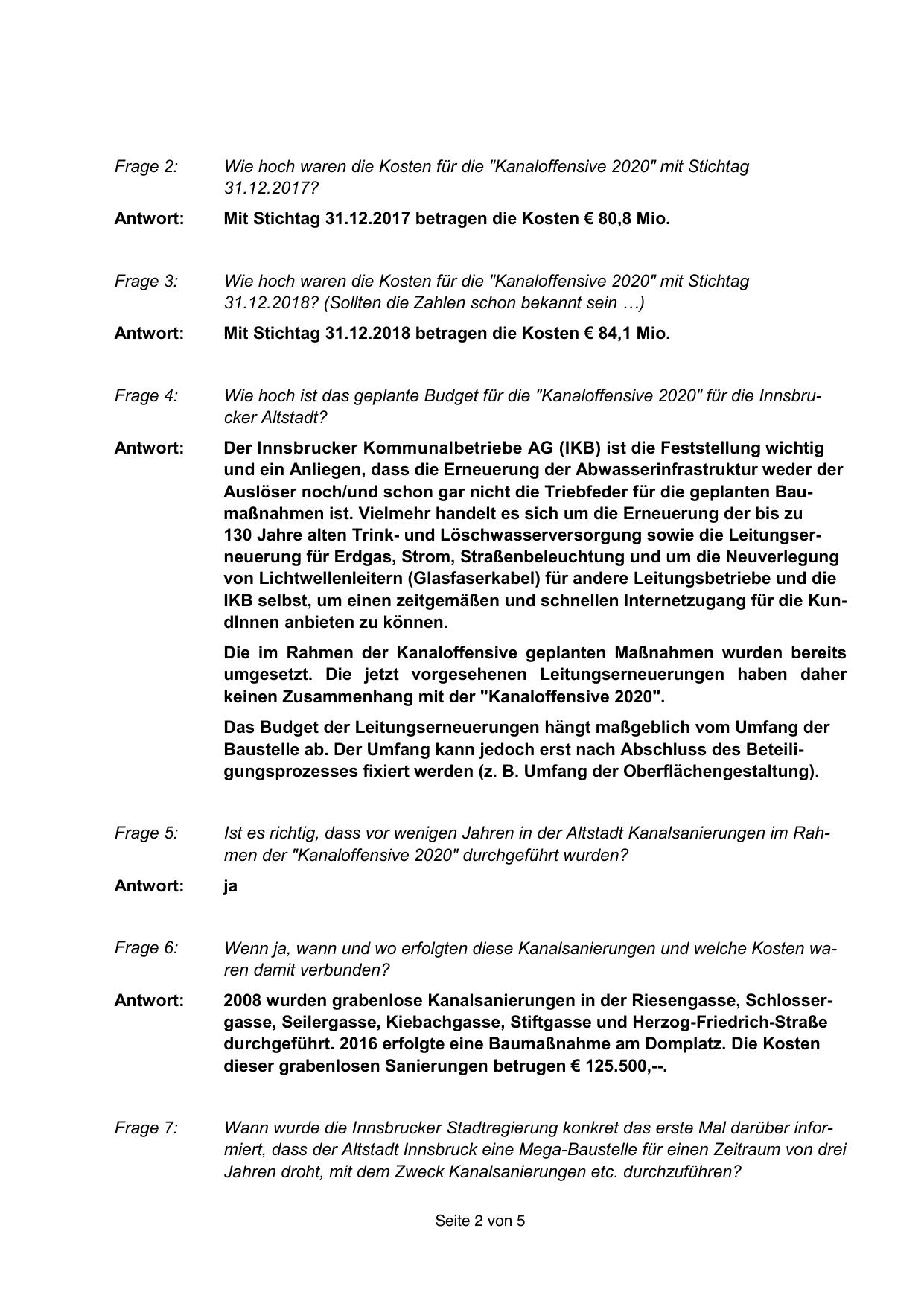 Wie hoch ist das geplante Budget für die "Kanaloffensive 2020" für die Innsbrucker Altstadt?
