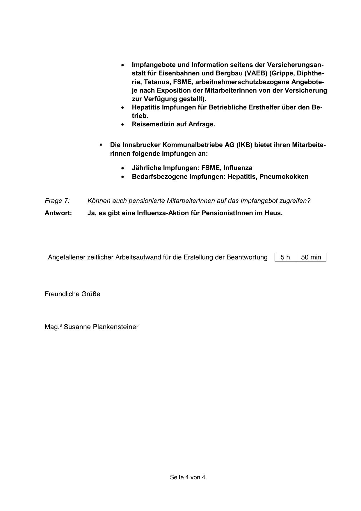 Angefallener zeitlicher Arbeitsaufwand für die Erstellung der Beantwortung