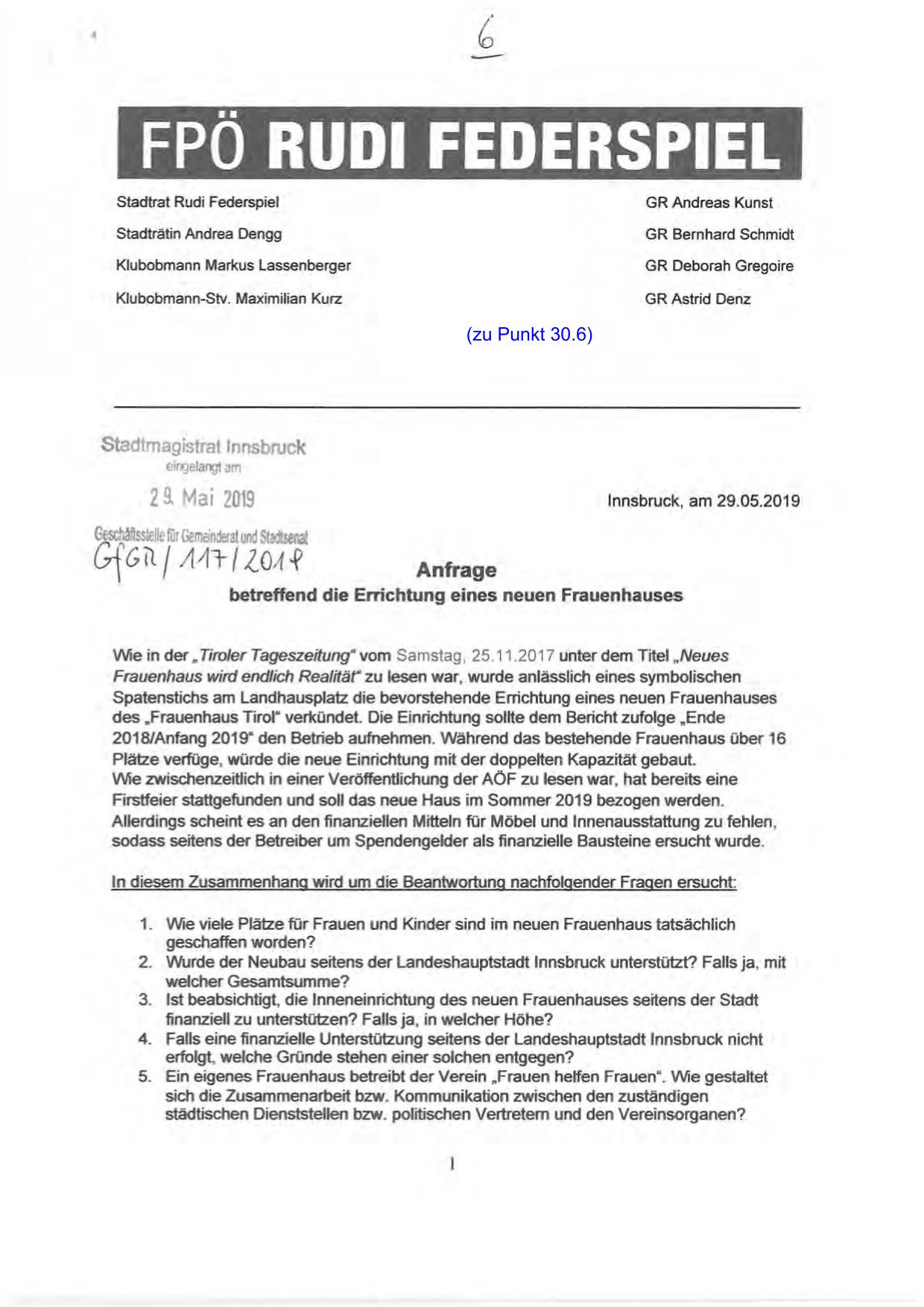 Spatensüchs am Landhausplatz die bevorstehende Errichtung eines neuen Frauenhauses