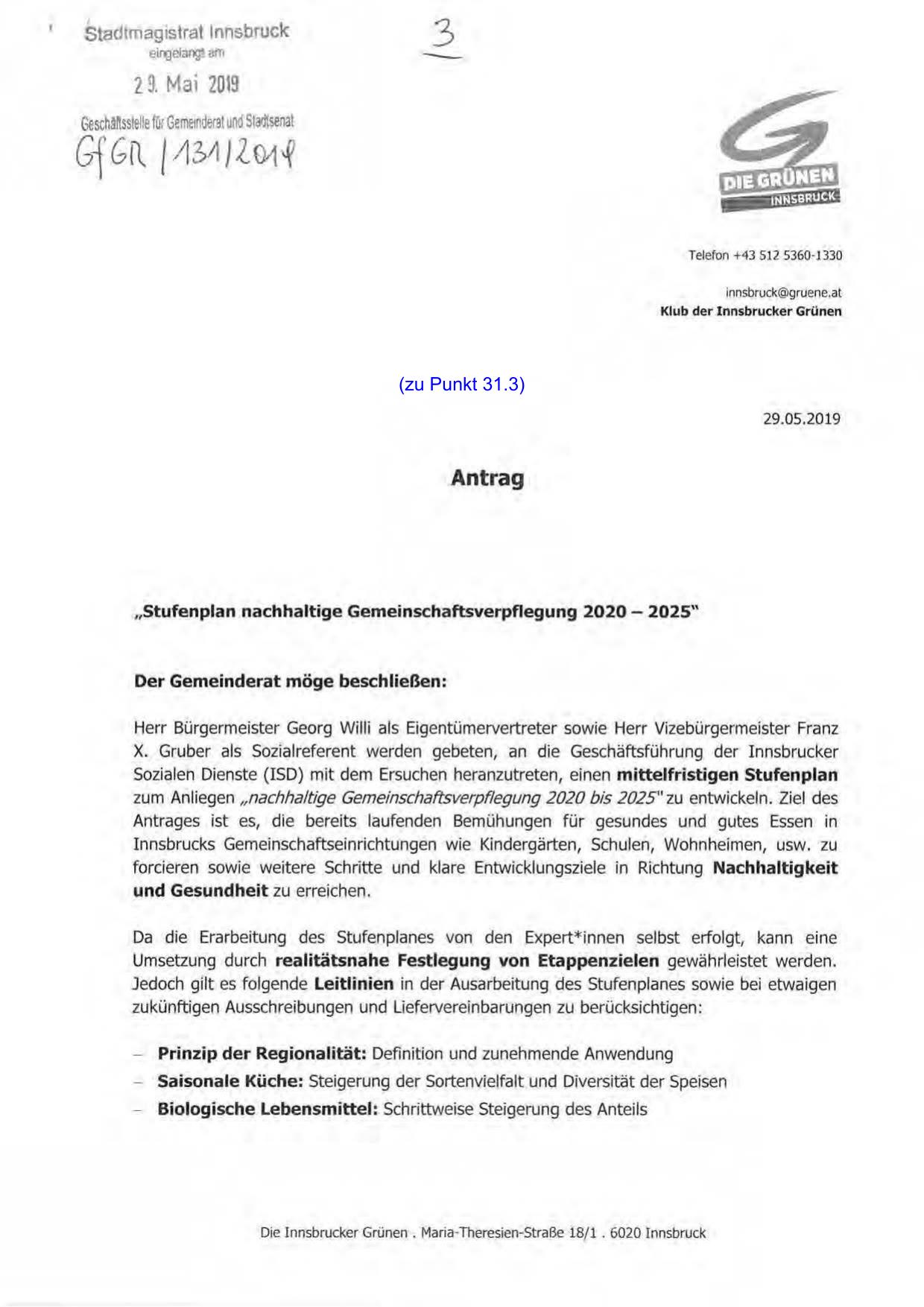 X. Gruber als Sozialreferent Werden gebeten, an die Geschäftsführung der Innsbrucker