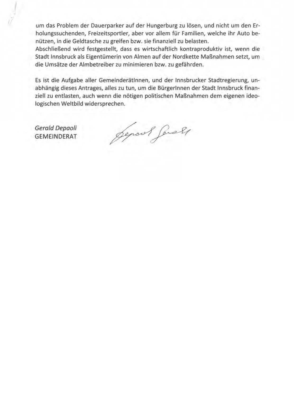 Es ist die Aufgabe aller Gemeinderätinnen, und der lnnsbrucker Stadtregierung, unabhängig dieses Antrages, alles zu tun, um die Bürgerinnen der Stadt Innsbruck finanziell zu entlasten, auch wenn die nötigen politischen Maßnahmen dem eigenen ideologischen Weltbild widersprechen.