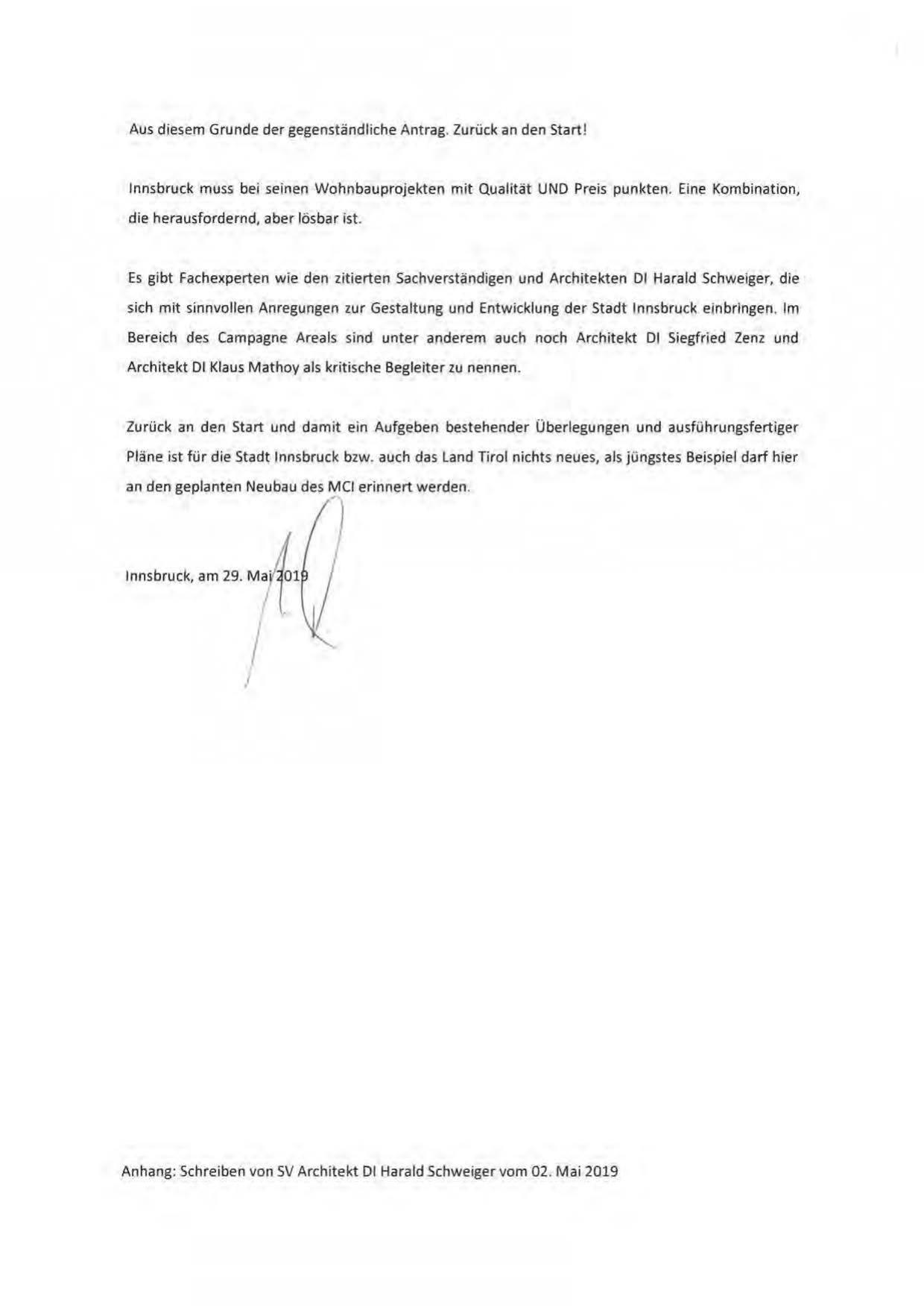 Anhang: Schreiben von SV Architekt DI Harald Schweiger vom 02. Mai 2019