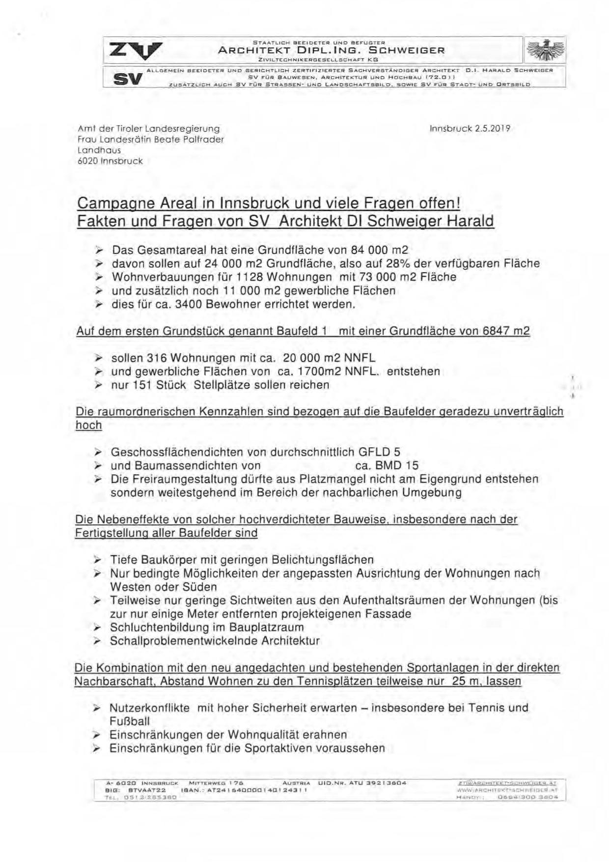 Campagne Areal in Innsbruck und viele Fragen offen!