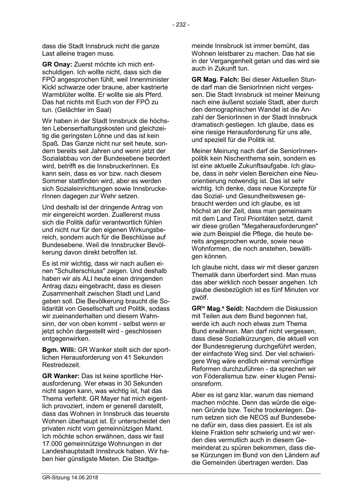 GR Mag. Falch: Bei dieser Aktuellen Stunde darf man die SeniorInnen nicht vergessen. Die Stadt Innsbruck ist meiner Meinung