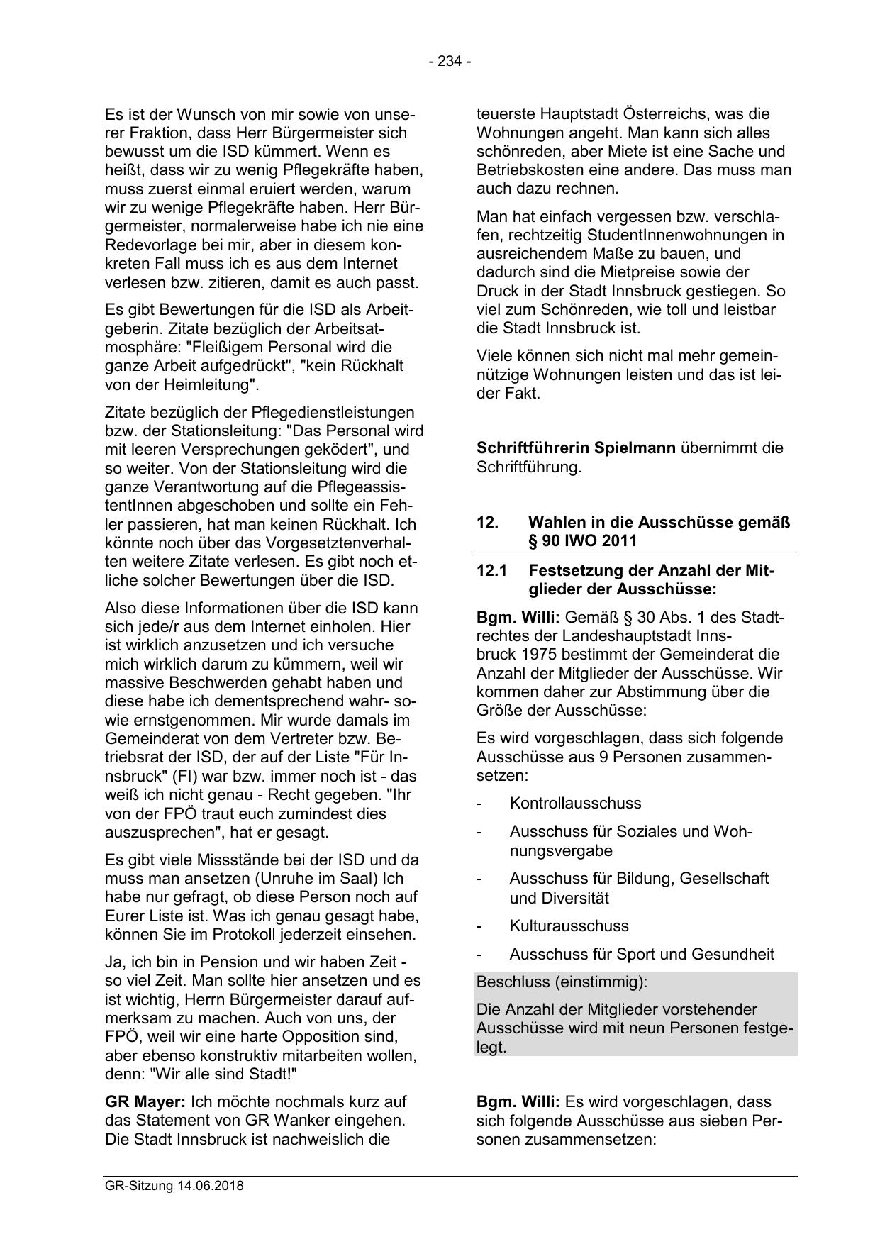 Bgm. Willi: Gemäß § 30 Abs. 1 des Stadtrechtes der Landeshauptstadt Innsbruck 1975 bestimmt der Gemeinderat die