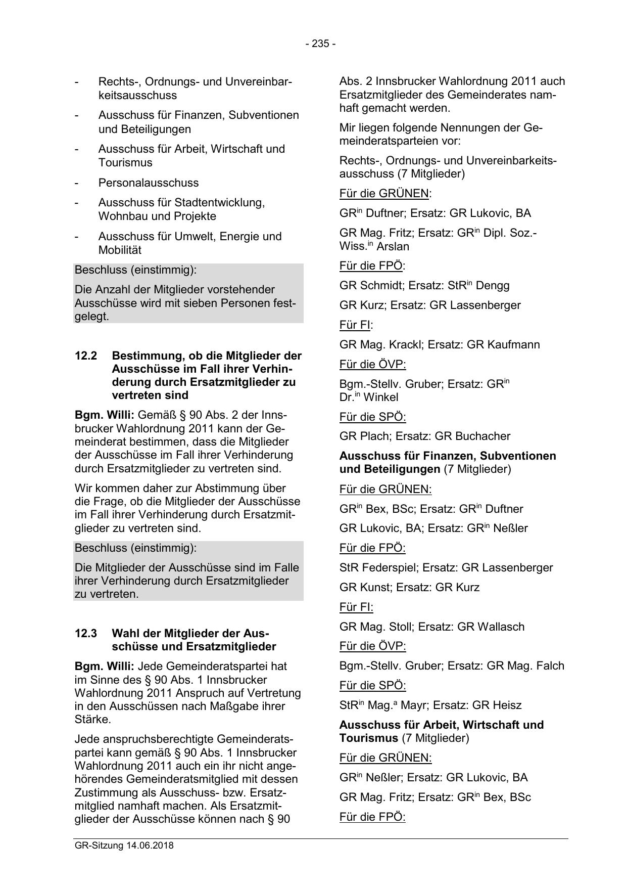 Bgm. Willi: Gemäß § 90 Abs. 2 der Innsbrucker Wahlordnung 2011 kann der Gemeinderat bestimmen, dass die Mitglieder