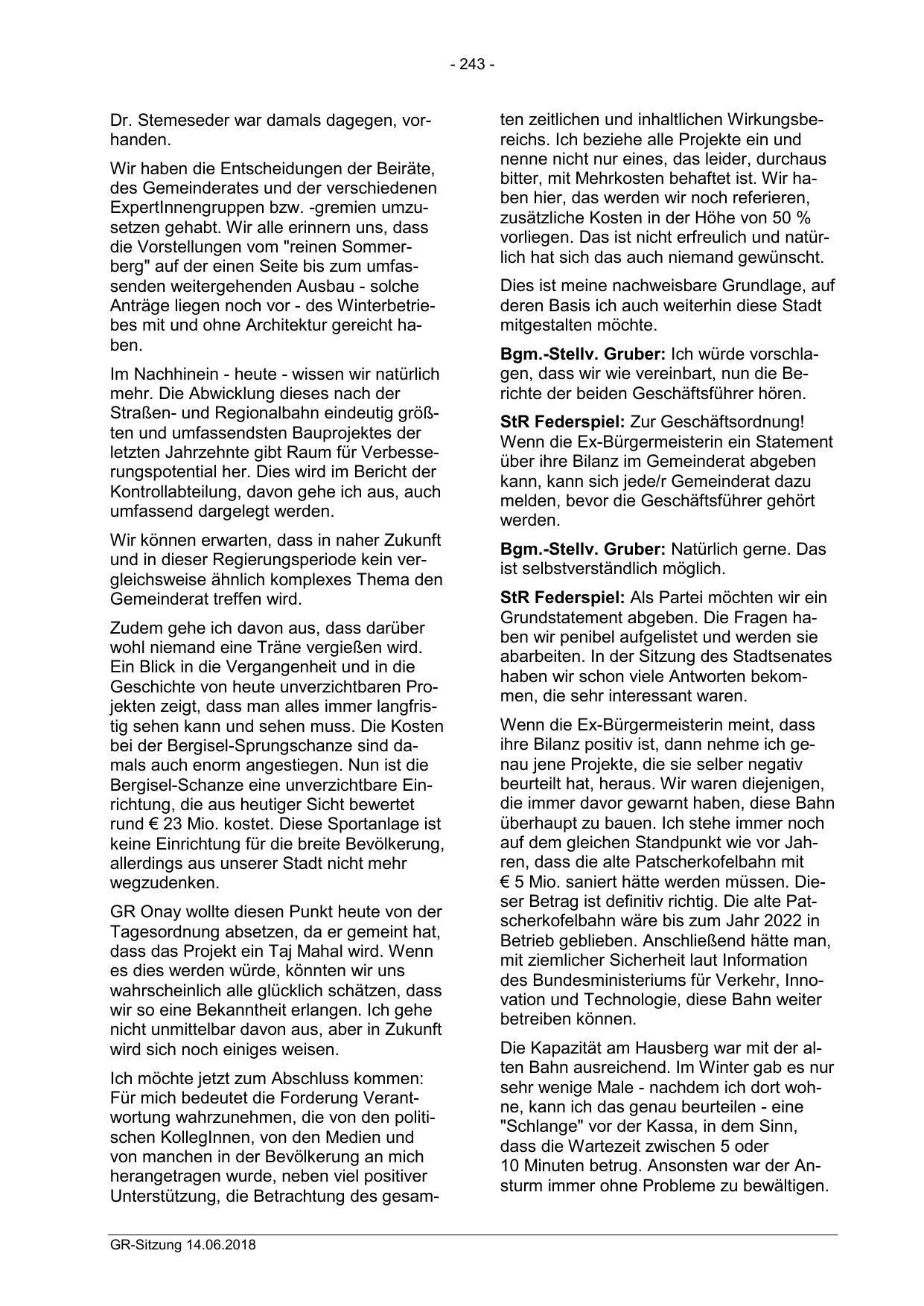 Bgm.-Stellv. Gruber: Ich würde vorschlagen, dass wir wie vereinbart, nun die Berichte der beiden Geschäftsführer hören.