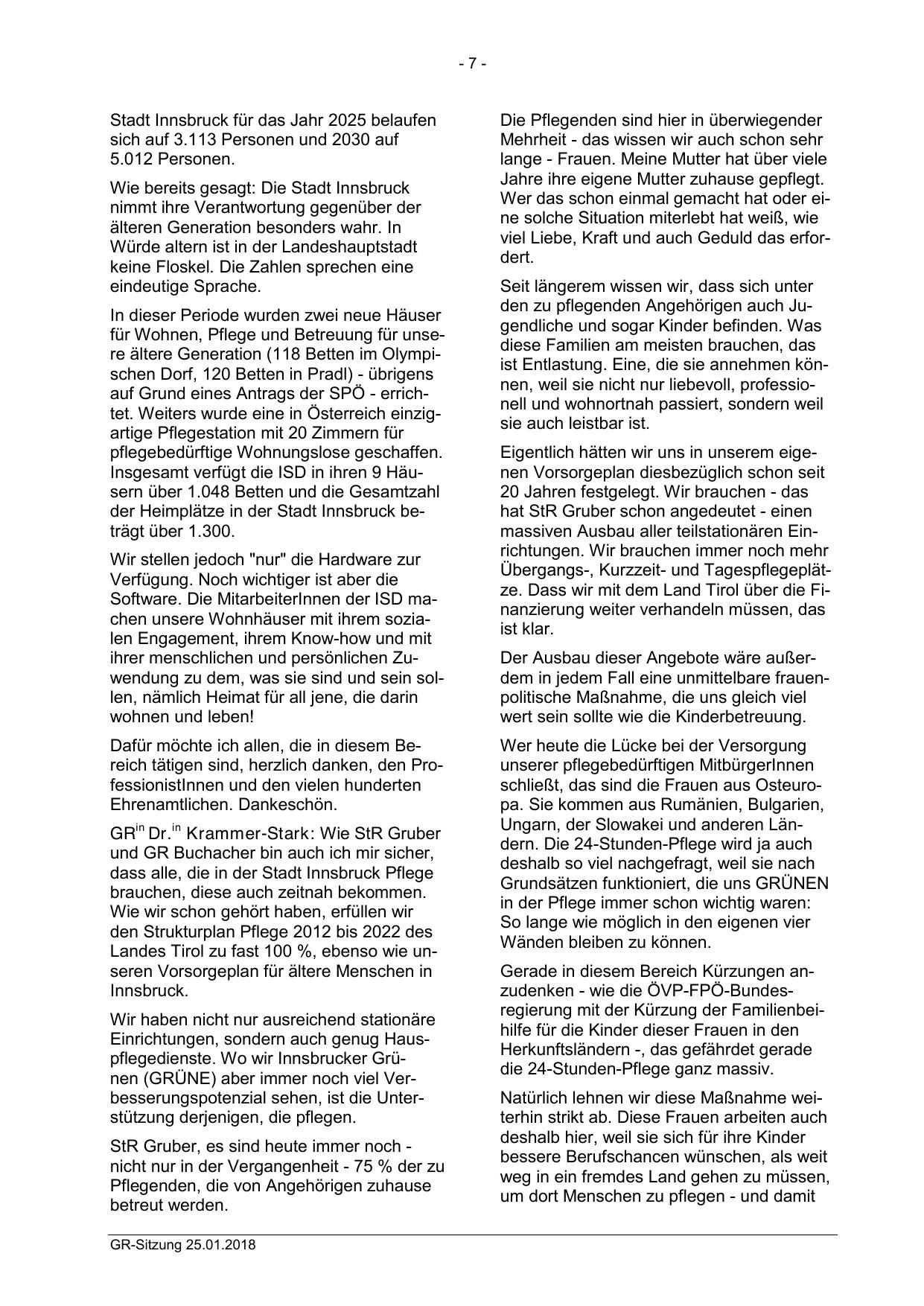 Einrichtungen, sondern auch genug Hauspflegedienste. Wo wir Innsbrucker Grünen (GRÜNE) aber immer noch viel Verbesserungspotenzial sehen, ist die Unterstützung derjenigen, die pflegen.