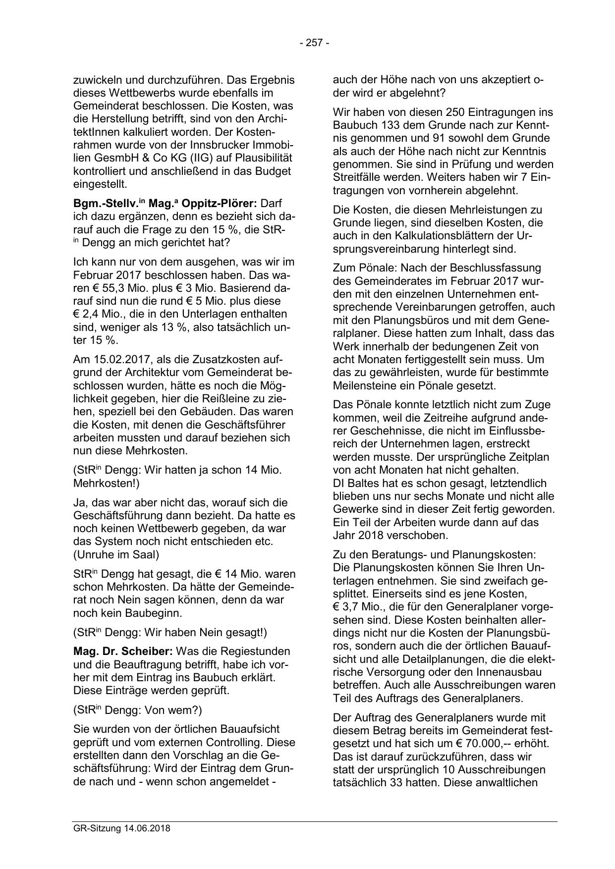 StR Dengg hat gesagt, die € 14 Mio. waren