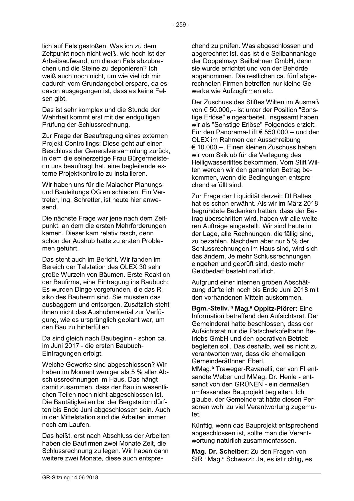 weitere zwei Monate, diese auch entspreGR-Sitzung 14.06.2018