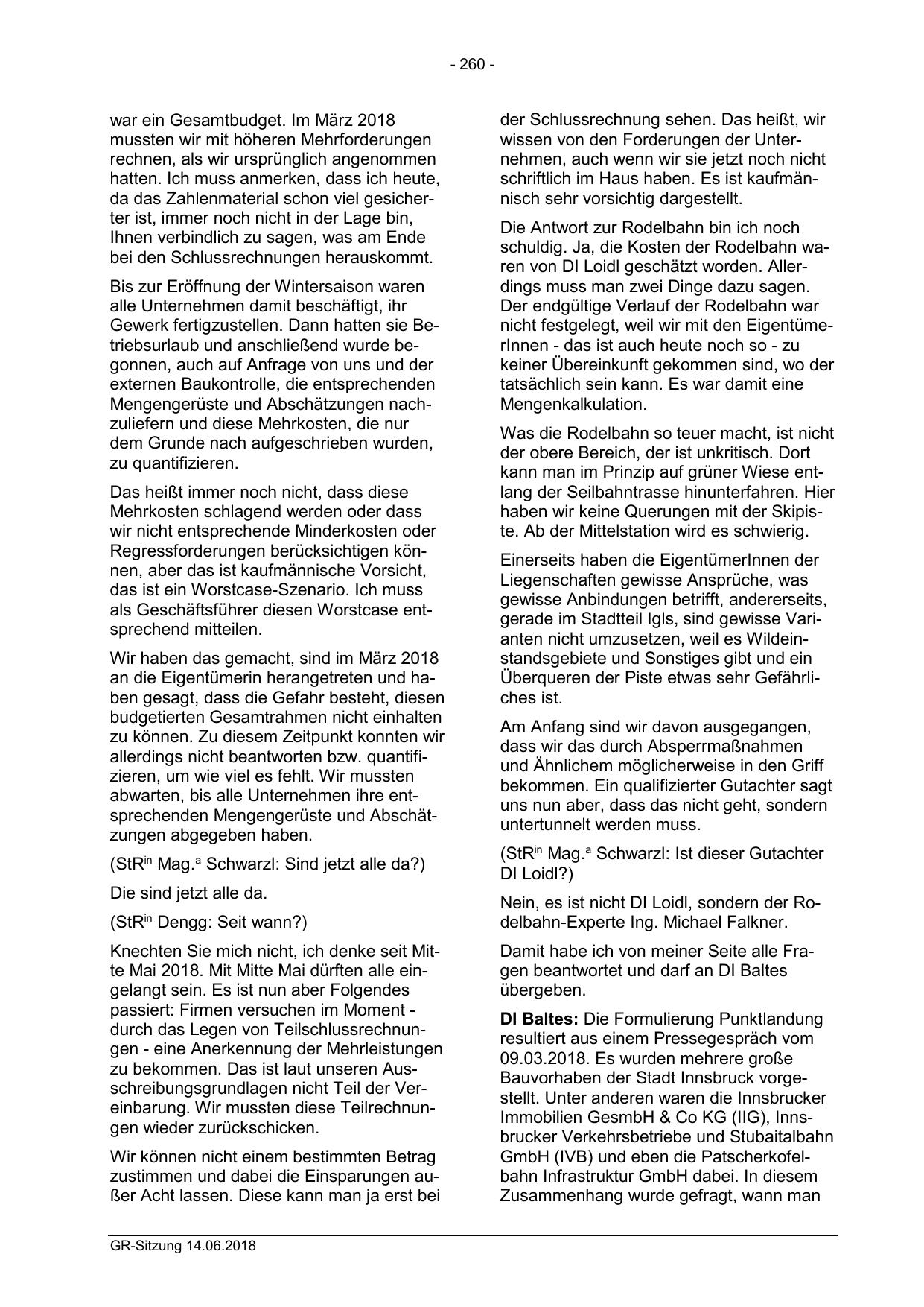 schuldig. Ja, die Kosten der Rodelbahn waren von DI Loidl geschätzt worden. Allerdings muss man zwei Dinge dazu sagen.