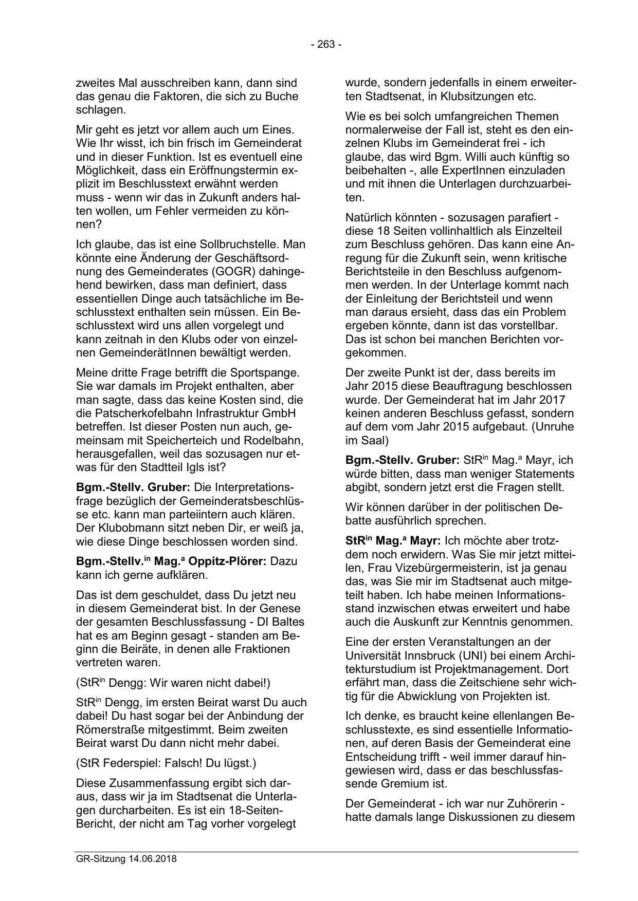 Diese Zusammenfassung ergibt sich daraus, dass wir ja im Stadtsenat die Unterlagen durcharbeiten. Es ist ein 18-SeitenBericht, der nicht am Tag vorher vorgelegt