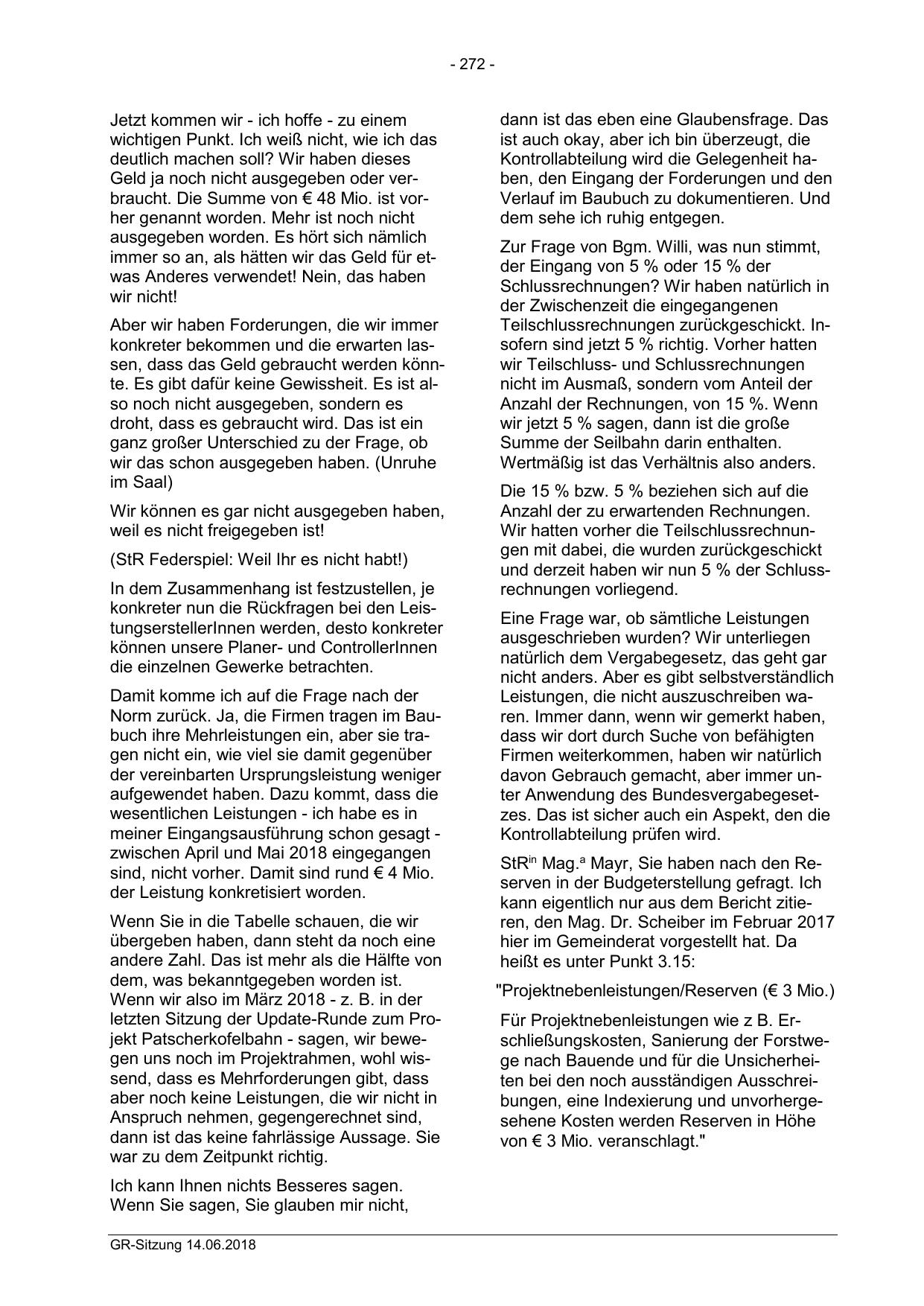 letzten Sitzung der Update-Runde zum Projekt Patscherkofelbahn - sagen, wir bewegen uns noch im Projektrahmen, wohl wissend, dass es Mehrforderungen gibt, dass