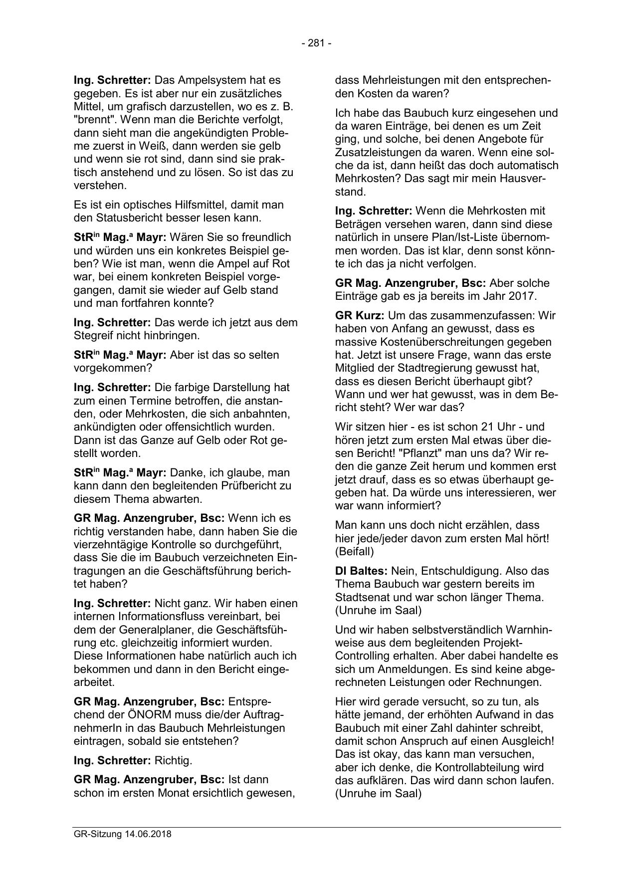 GR Mag. Anzengruber, Bsc: Entsprechend der ÖNORM muss die/der AuftragnehmerIn in das Baubuch Mehrleistungen