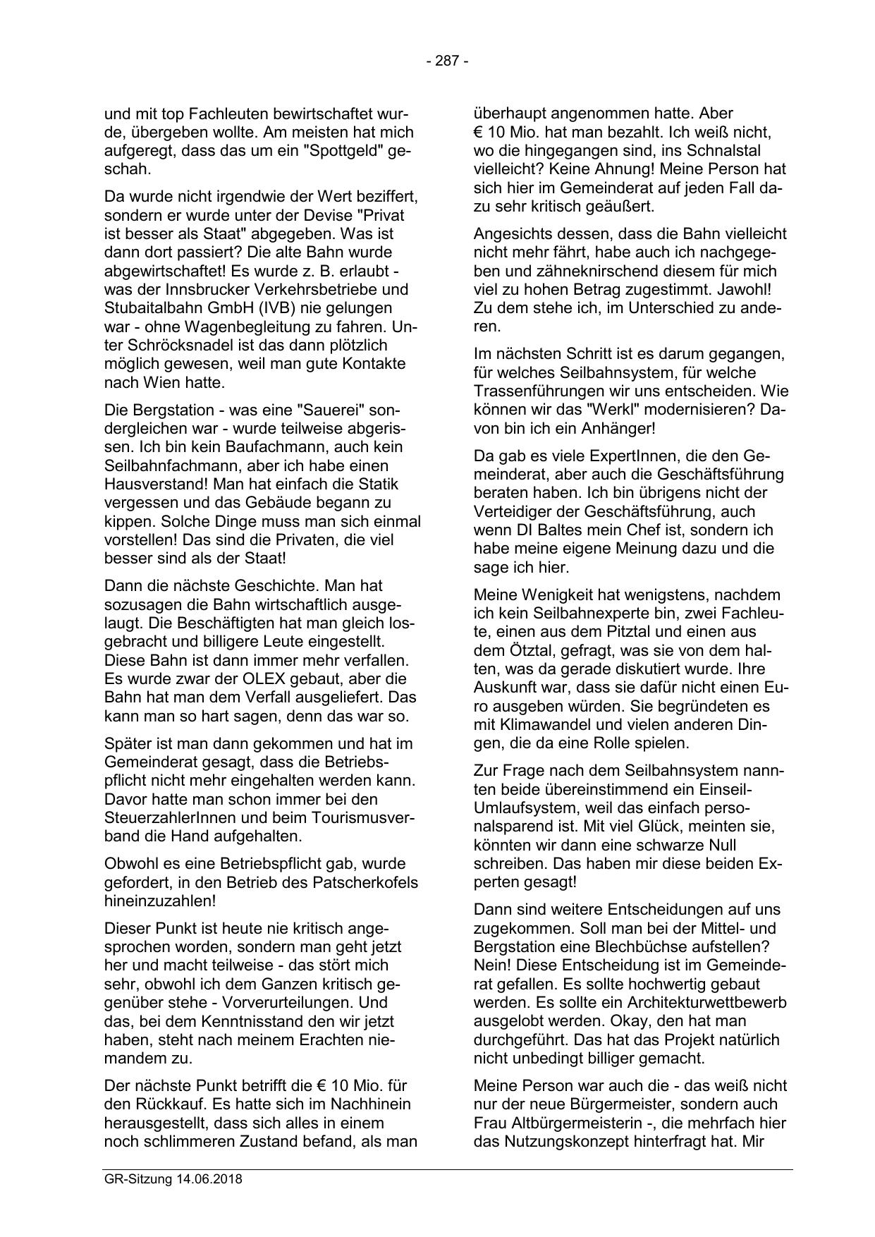 sich hier im Gemeinderat auf jeden Fall dazu sehr kritisch geäußert.