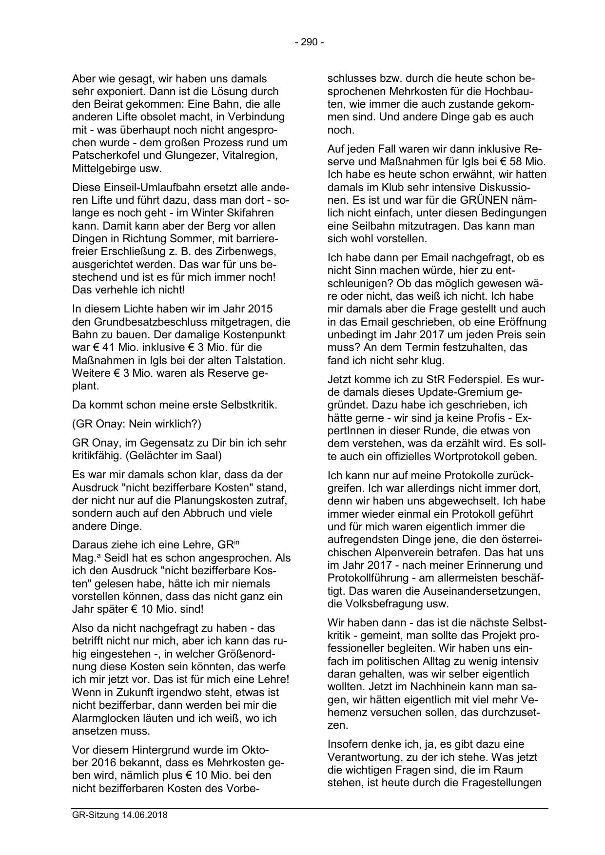nicht bezifferbaren Kosten des VorbeGR-Sitzung 14.06.2018