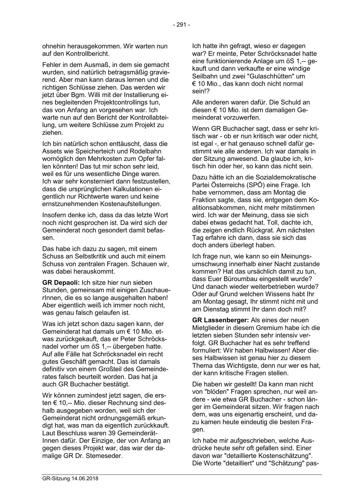 diesen € 10 Mio. ist dem damaligen Gemeinderat vorzuwerfen.