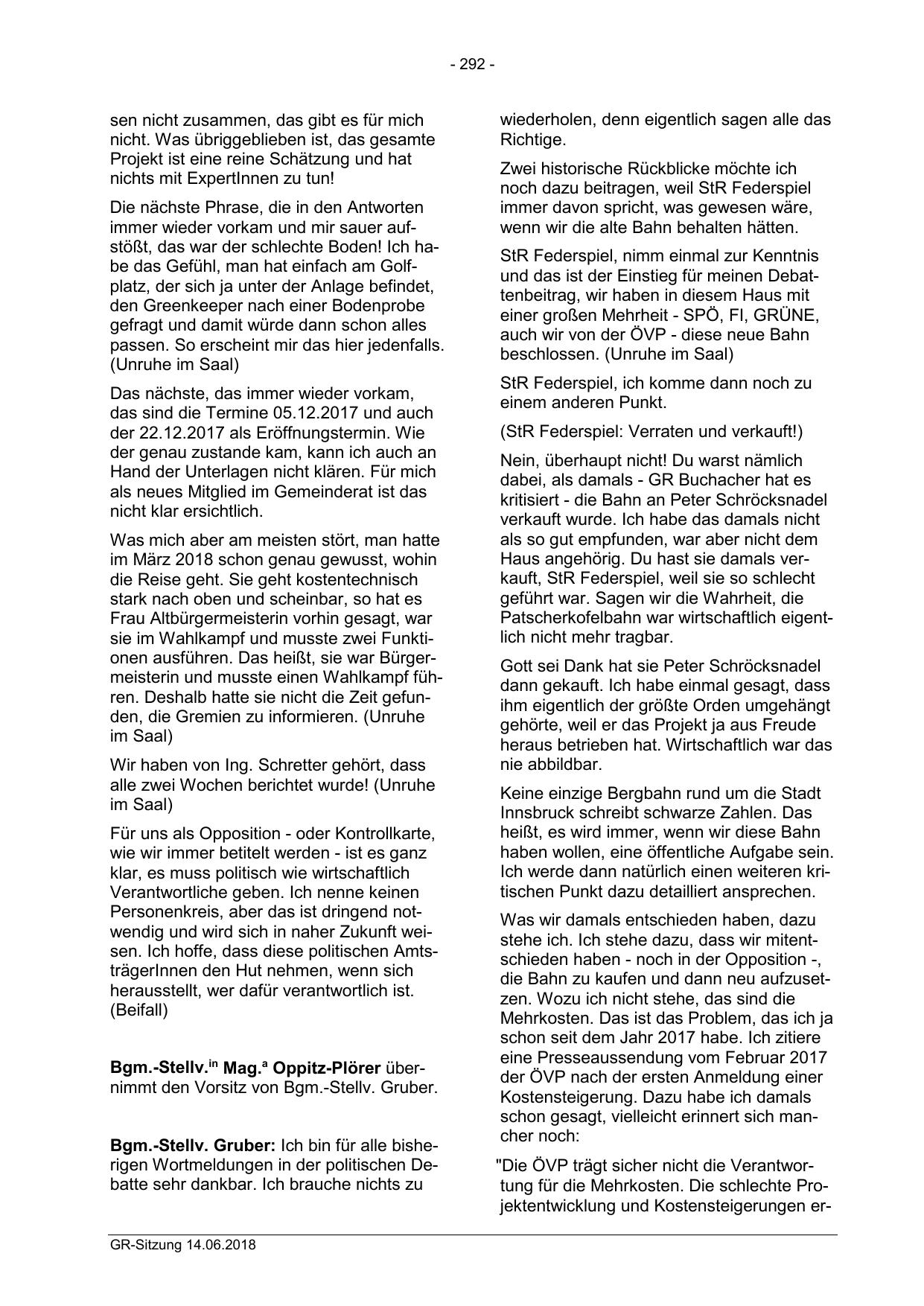 Bgm.-Stellv. Gruber: Ich bin für alle bisherigen Wortmeldungen in der politischen Debatte sehr dankbar. Ich brauche nichts zu