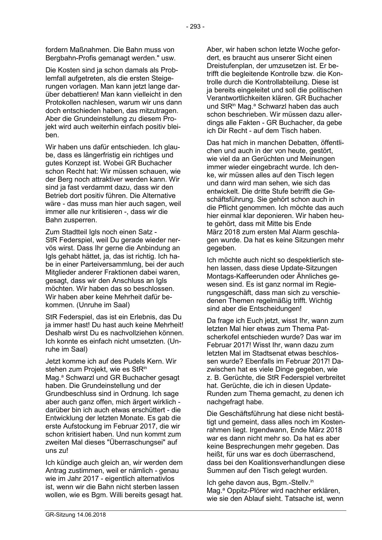 Zum Stadtteil Igls noch einen Satz StR Federspiel, weil Du gerade wieder nervös wirst. Dass Ihr gerne die Anbindung an