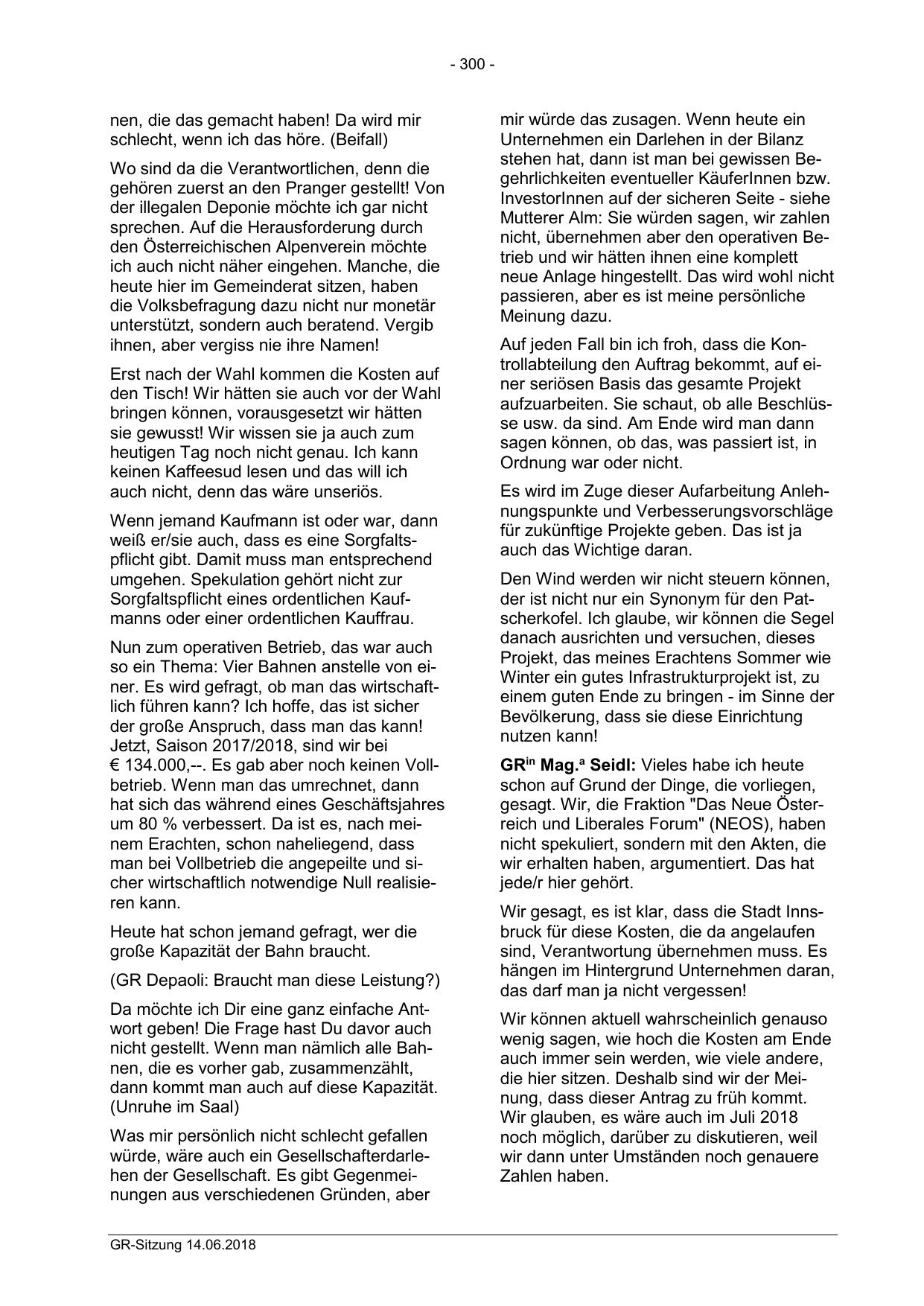 Wir gesagt, es ist klar, dass die Stadt Innsbruck für diese Kosten, die da angelaufen