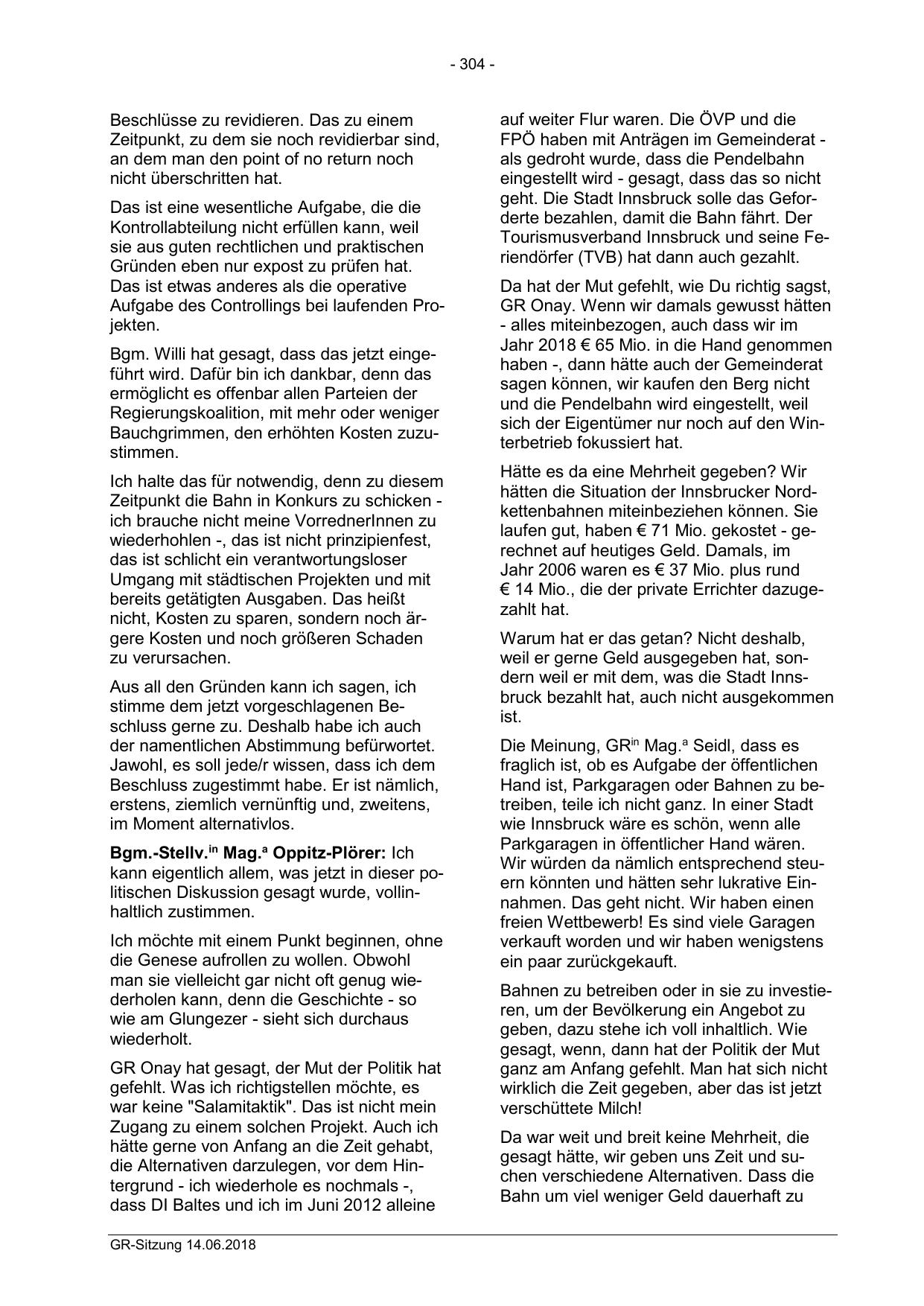 geht. Die Stadt Innsbruck solle das Geforderte bezahlen, damit die Bahn fährt. Der