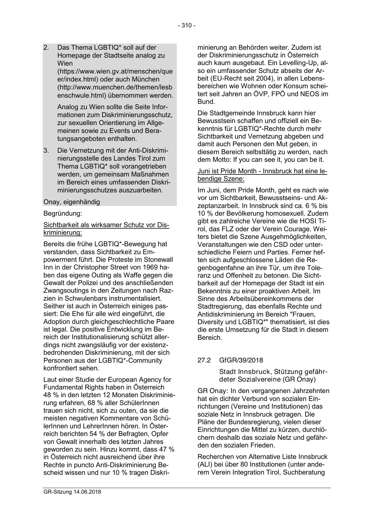 Stadt Innsbruck, Stützung gefährdeter Sozialvereine (GR Onay)