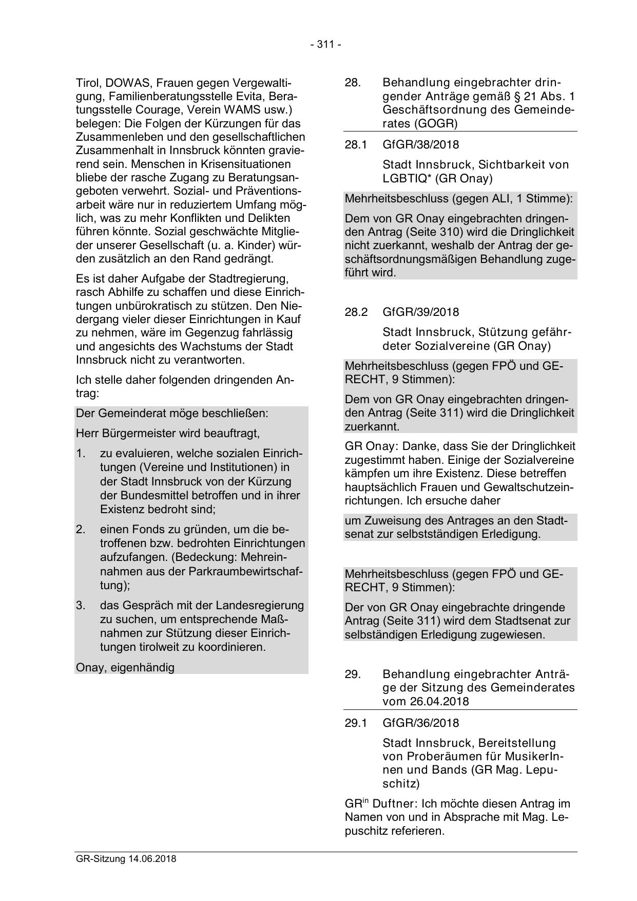 Dem von GR Onay eingebrachten dringenden Antrag (Seite 311) wird die Dringlichkeit