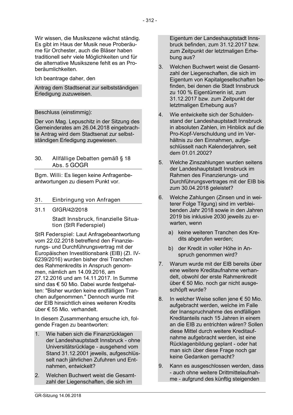 Stadt Innsbruck, finanzielle Situation (StR Federspiel)