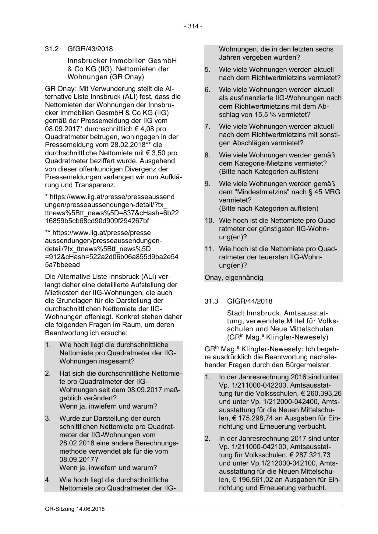 GRin Mag.a Klingler-Newesely: Ich begehre ausdrücklich die Beantwortung nachstehender Fragen durch den Bürgermeister.