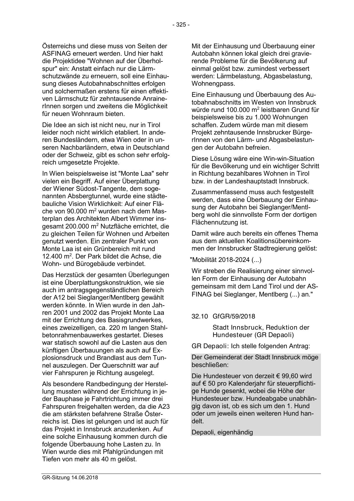 aus dem aktuellen Koalitionsübereinkommen der Innsbrucker Stadtregierung gelöst: